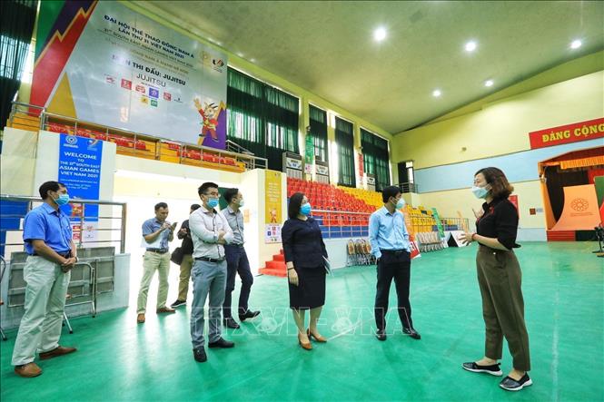 Chiều 5/4/2022, Tổ công tác số 3 của Sở Văn hóa và Thể thao Hà Nội đi kiểm tra, giám sát tại Nhà thi đấu Đan Phượng. Đến nay, công tác chuẩn bị, điều kiện cơ sở vật chất, trang thiết bị của nhà thi đấu đã hoàn tất, sẵn sàng phục vụ thi đấu môn Jujitsu tại SEA Games 31 diễn ra từ ngày 14 đến ngày 15/5/2022. Ảnh: TTXVN