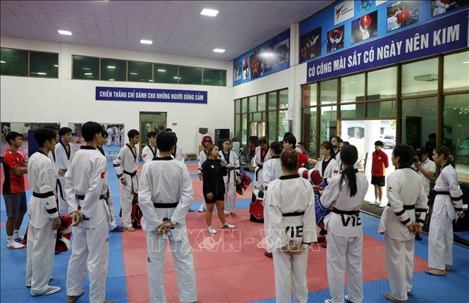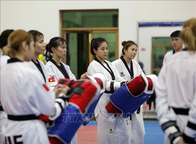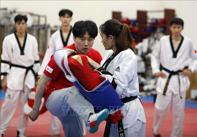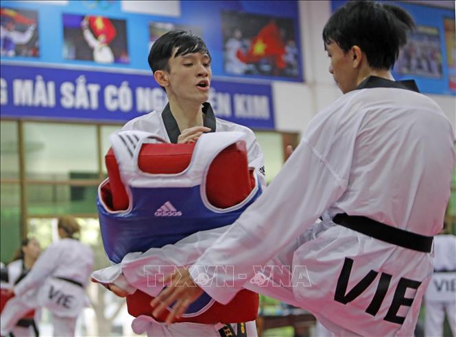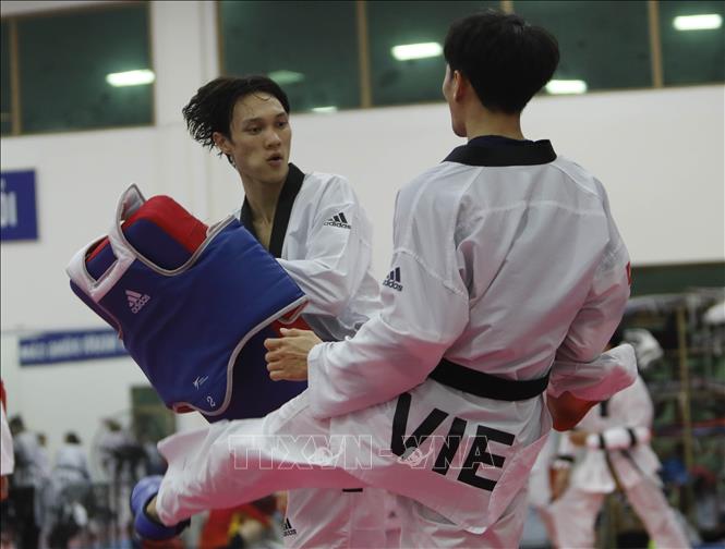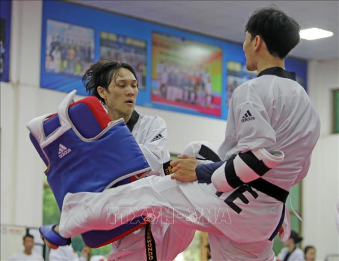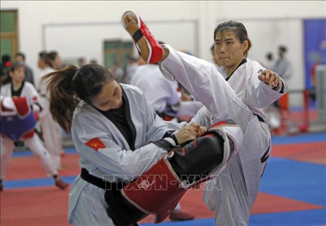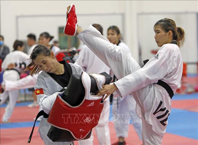 Với mục tiêu nằm trong top ba SEA Games 31 sắp tới, dưới sự huấn luyện của chuyên gia đến từ Hàn Quốc Kim Kil Tae, đội tuyển Taekwondo nam, nữ Việt Nam đang nỗ lực tập luyện, để có sức khỏe và kỹ thuật tốt nhất sẵn sàng chinh phục đấu trường khu vực. Ảnh: Trần Việt - TTXVN