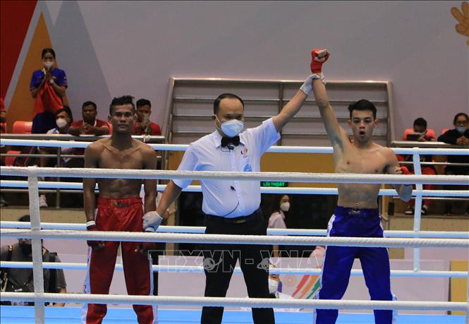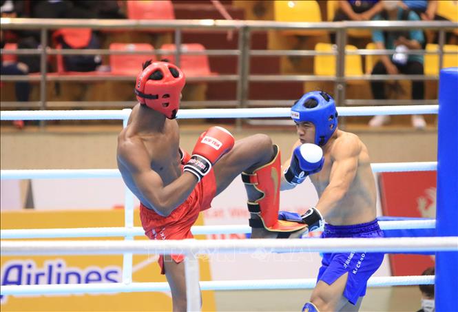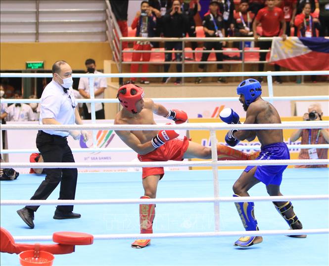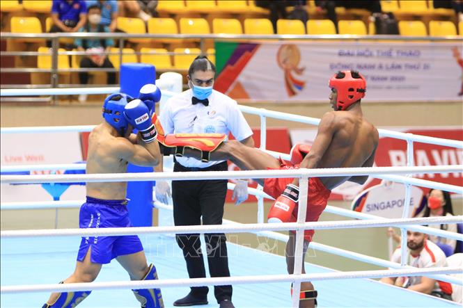 Trong ngày thi đấu thứ 2 môn Kickboxing SEA Games 31, tối 9/5/2022, tại Nhà thi đấu đa năng tỉnh Bắc Ninh, thành phố Bắc Ninh diễn ra các trận đấu vòng tứ kết. Ảnh: TTXVN