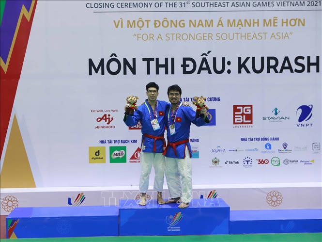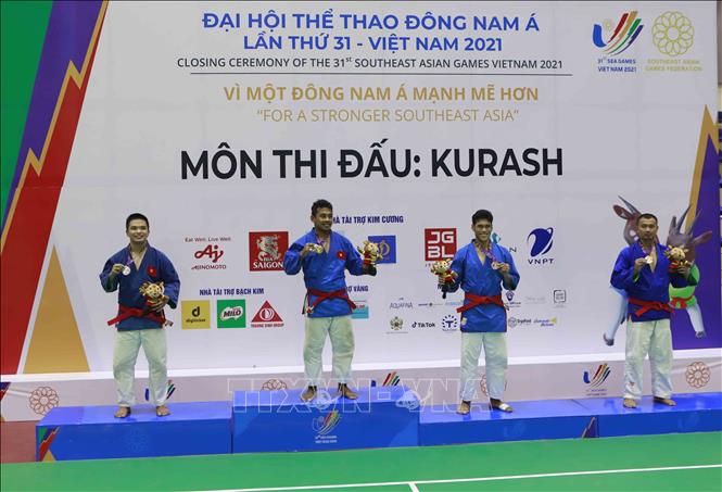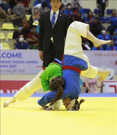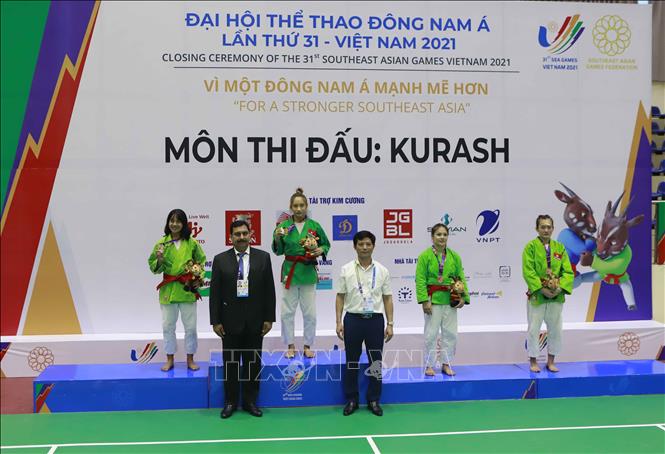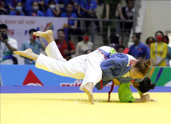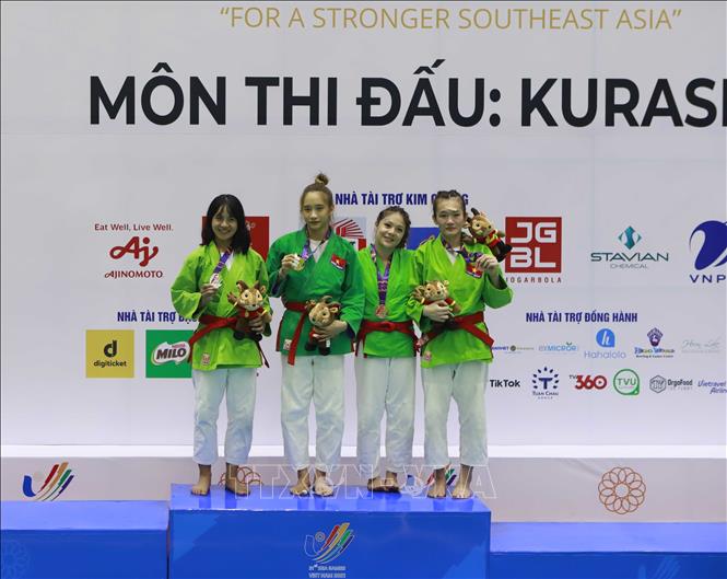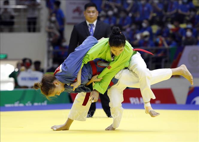 Ngày 10/5/2022, đội tuyển Kurash Việt Nam đã thi đấu thành công, mang về 4 huy chương Vàng cho Đoàn thể thao Việt Nam trong ngày ra quân môn thể thao thế mạnh này tại SEA Games 31. Các vận động viên giành HCV là Tô Thị Trang (48kg nữ), Phạm Nguyễn Hồng Mơ (52kg nữ), Bùi Minh Quân (81kg nam) và Trần Thương (90kg nam). Ảnh: Trần Việt - TTXVN