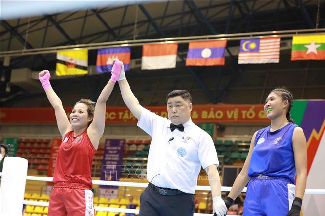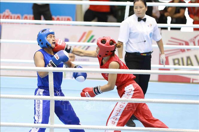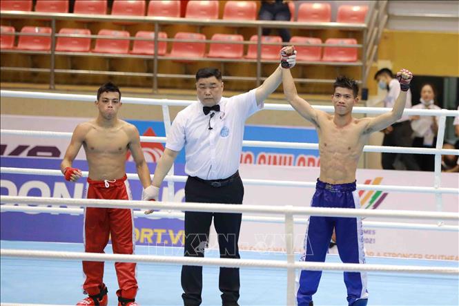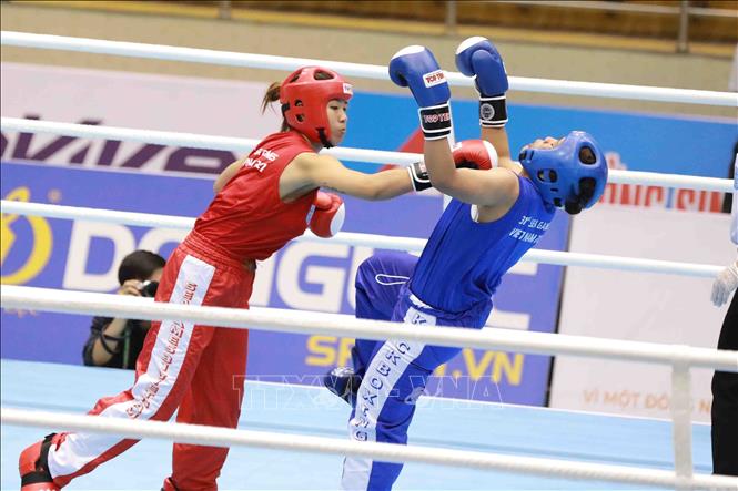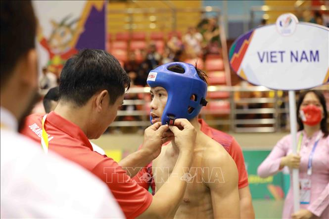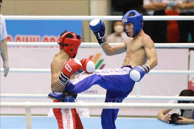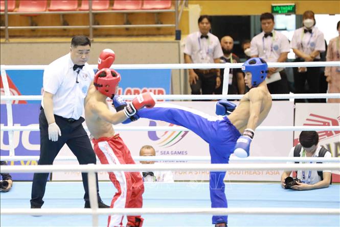 Chiều 11/5/2022, tại Nhà thi đấu tỉnh Bắc Ninh tiếp tục diễn ra các trận thi đấu vòng bán kết môn Kickboxing tại SEA Games 31. Ảnh: Vũ Sinh – TTXVN