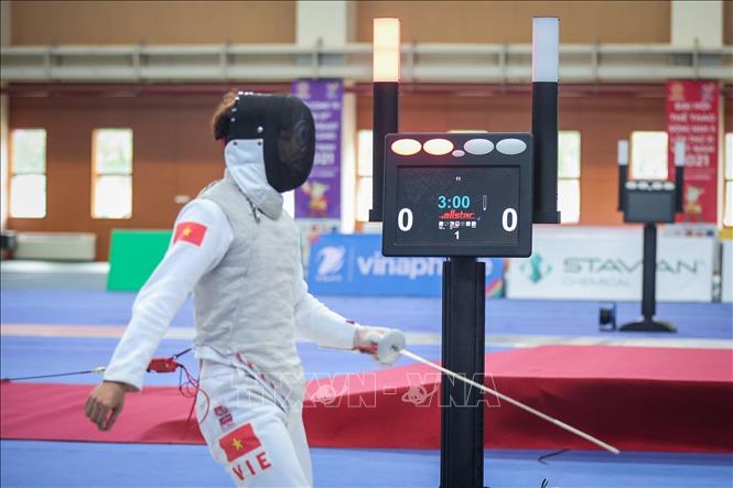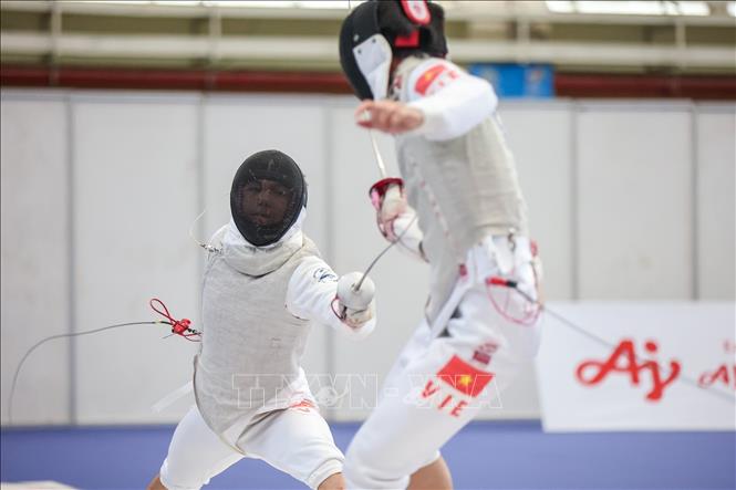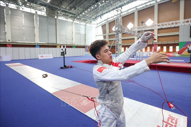 Tính đến thời điểm hiện tại, toàn bộ ban huấn luyện và vận động viên đội tuyển đấu kiếm Việt Nam đang tích cực tập luyện nhằm duy trì thể lực, kỹ thuật, chiến thuật và tâm lý tốt nhất, hướng tới mục tiêu mang về ít nhất 3 huy chương Vàng tại SEA Games 31. Môn đấu kiếm của SEA Games 31 sẽ tranh tài tại Cung điền kinh trong nhà (Hà Nội) từ 13-18/5 với 12 bộ huy chương. Các nội dung thi đấu gồm: kiếm chém cá nhân nam, nữ; kiếm ba cạnh cá nhân nam, nữ; kiếm liễu cá nhân nam, nữ; đồng đội kiếm chém nam, nữ; đồng đội kiếm ba cạnh nam, nữ; đồng đội kiếm liễu nam, nữ. Ảnh: Minh Sơn-TTXVN