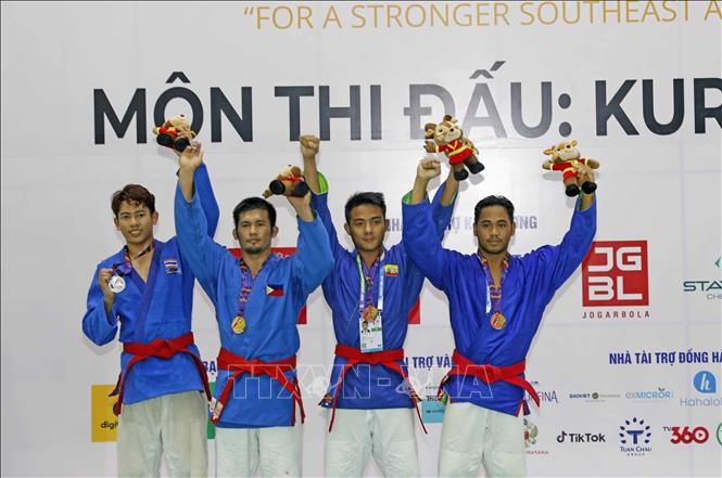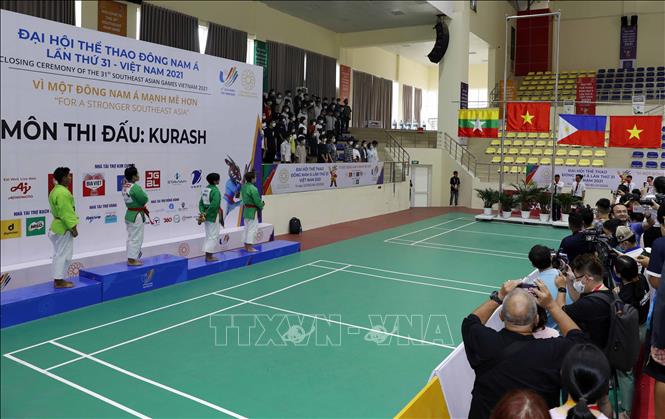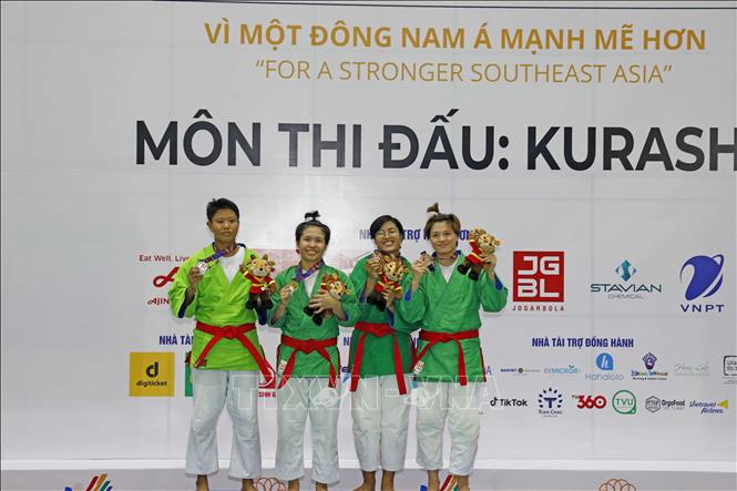 Ngày 13/5/2022, tại Nhà thi đấu Hoài Đức (Hà Nội), môn Kurash tại SEA Games 31 bước vào ngày thi đấu thứ 3 - ngày thi đấu cuối cùng với các trận thi đấu đối kháng từ vòng loại đến chung kết ở các hạng cân 57 kg, 70 kg nữ; 73 kg nam. Kết thúc môn thi đấu tại SEA Games 31, Đội tuyển Kurash Việt Nam giành huy chương Vàng, vượt 2 huy chương Vàng so với chỉ tiêu đề ra. Ảnh: Trần Việt – TTXVN