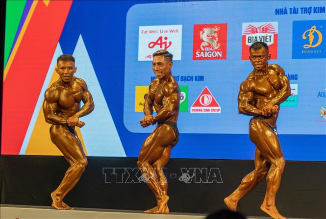 Ngày 13/5/2022, tại Trung tâm Huấn luyện và Thi đấu TDTT Hà Nội khởi tranh môn Thể hình tại SEA Games 31 từ vòng loại đến chung kết các nội dung: hạng cân 55 kg, 60kg, 65kg. Ảnh: Khánh Hòa - TTXVN