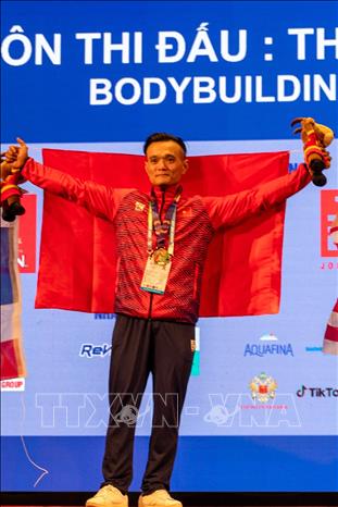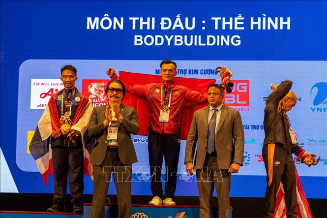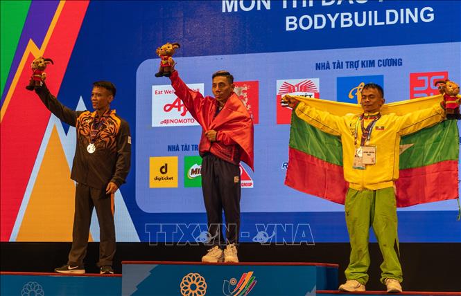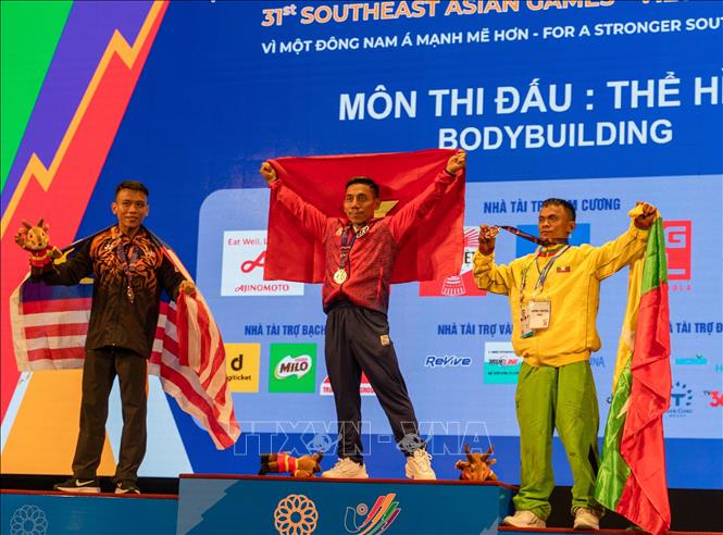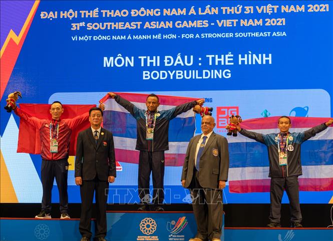 Ngày 13/5/2022, tại Trung tâm Huấn luyện và Thi đấu TDTT Hà Nội diễn ra các nội dung thi đấu hạng cân 55kg, 60kg, 65 kg của môn Thể hình ở SEA Games 31. Hai VĐV Phạm Văn Mách (hạng cân 55 kg) và Đặng Thanh Tùng (hạng cân 65 kg) đã xuất sắc mang về cho Đoàn thể thao Việt Nam 2 tấm huy chương Vàng. Ảnh: Khánh Hoà - TTXVN