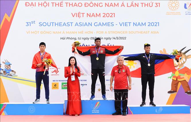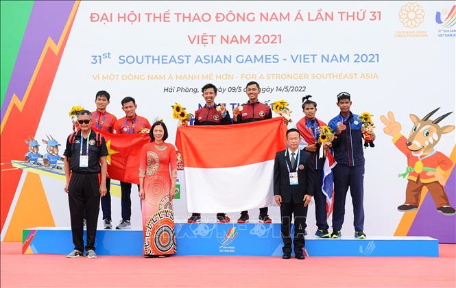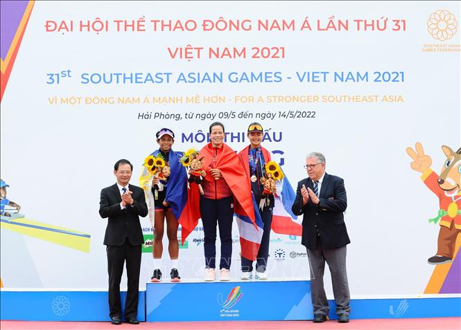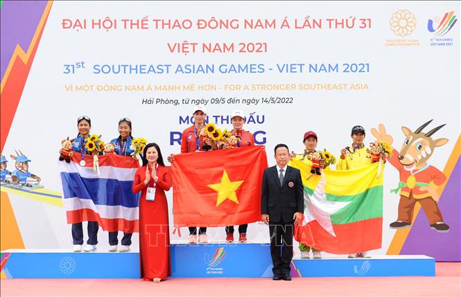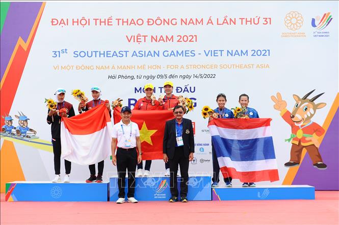 Ngày 14/5/2022 – ngày thi đấu thứ 5 và cũng là cuối cùng của môn Đua thuyền Rowing tại SEA Games 31, diễn ra tại Khu huấn luyện đua thuyền Hải Phòng, các VĐV Việt Nam đã xuất sắc giành 4 huy chương Vàng ở các nội dung thi đấu chung kết nhóm B. Kết thúc môn, Rowing Việt Nam giành tổng số 8 huy chương Vàng tại kỳ SEA Games này. Ảnh: Minh Đức – TTXVN