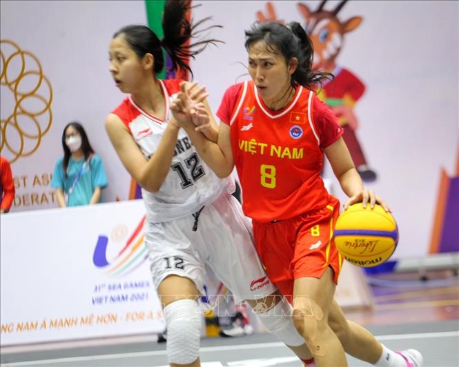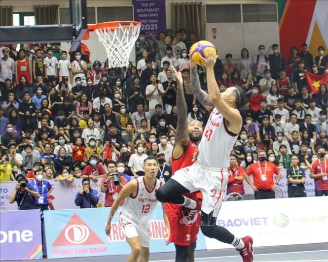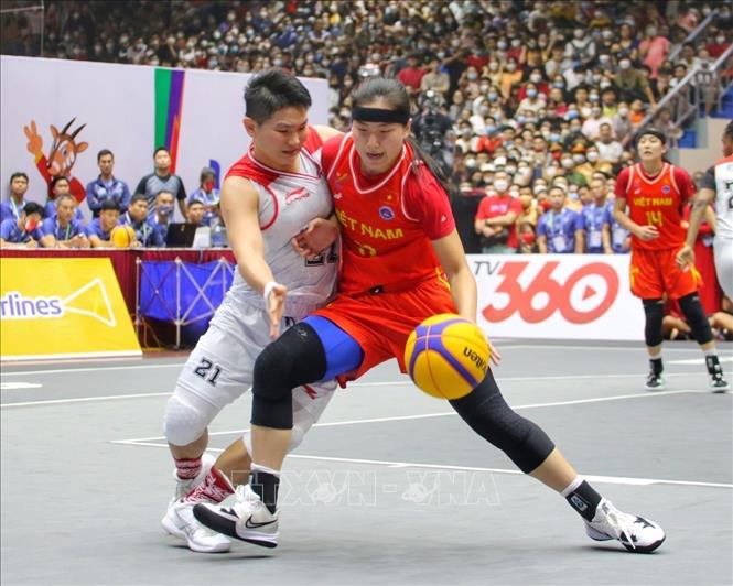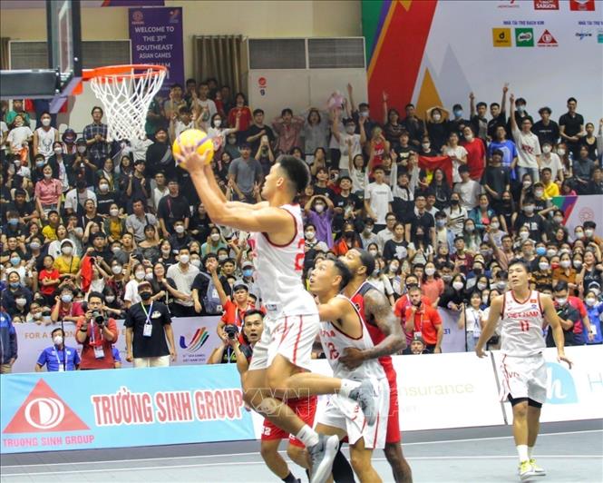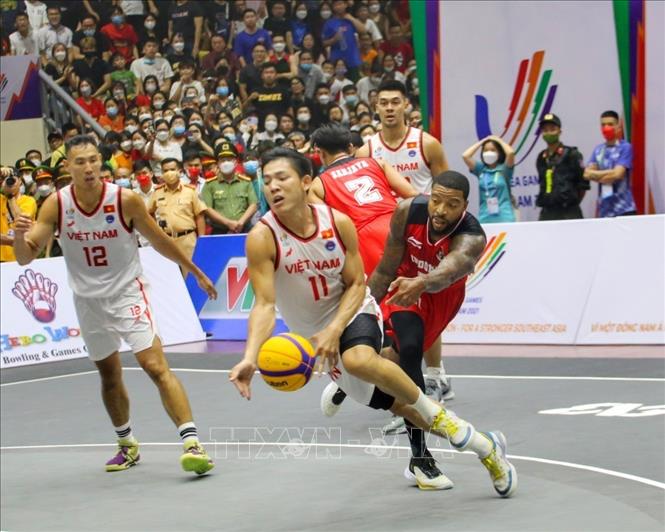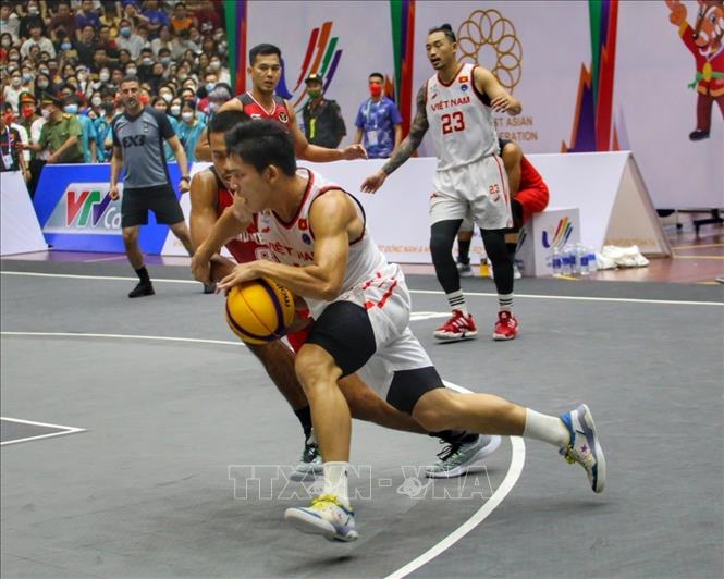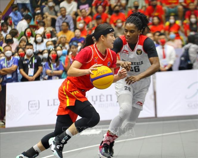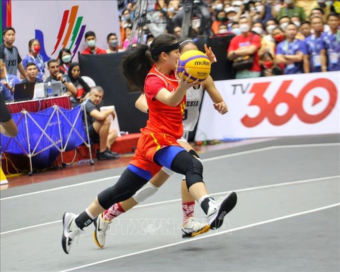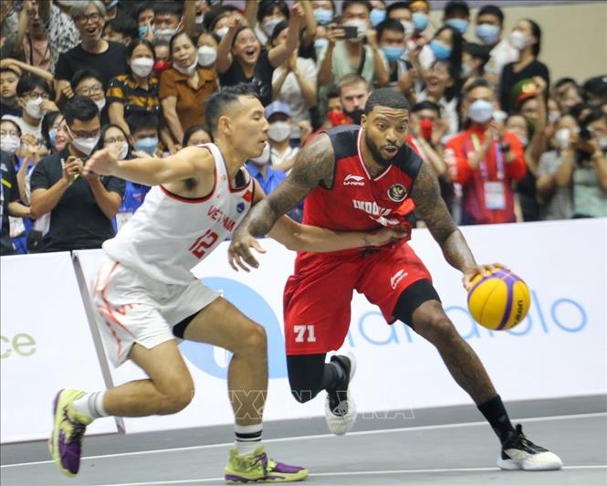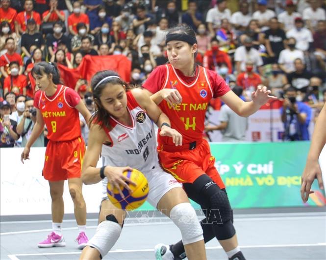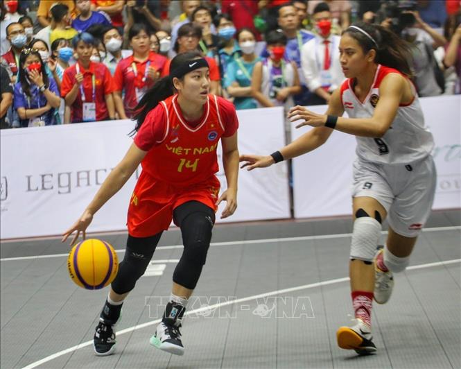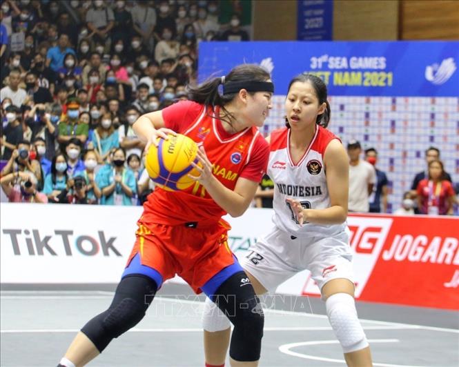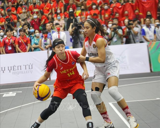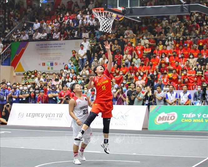 Chiều 14/5/2022, tại Nhà thi đấu Thanh Trì (Hà Nội) trong vòng bán kết môn Bóng rổ tại SEA Games 31, nội dung bóng rổ 3x3 (thi đấu nửa sân), đội tuyển Bóng rổ nam Việt Nam giành chiến thắng trước nam Indonesia với tỉ số 21-15; đội tuyển Bóng rổ nữ Việt Nam giành chiến thắng trước nữ Indonesia với tỉ số 19-16. Ảnh: Tuấn Đức - TTXVN