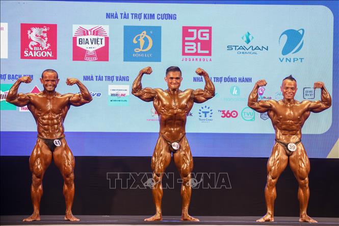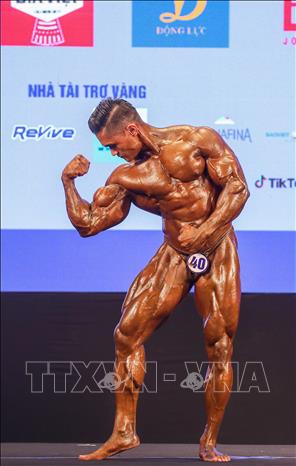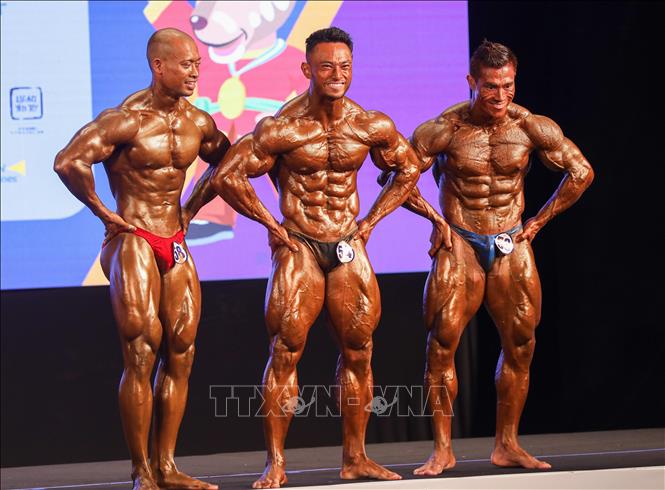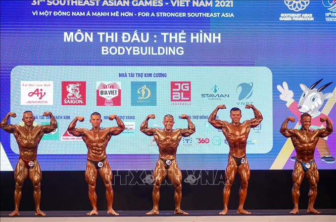 Chiều 14/5/2022, tại Trung tâm huấn luyện và thi đấu TDTT Hà Nội, môn Thể hình tại SEA Games 31 tiếp tục diễn ra các nội dung thi đấu các hạng cân 70, 75, 80, 85 kg. Các vận động viên thi đấu vòng loại, bán kết, chung kết và trao huy chương trong ngày. Ảnh: Khánh Hòa – TTXVN