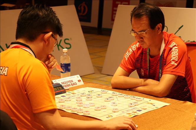 Ngày 14/5/2022, tại Khu du lịch nghỉ dưỡng Lagecy Yên Tử (thành phố Uông Bí, tỉnh Quảng Ninh), 2 VĐV Lại Lý Huynh và Nguyễn Thành Bảo của đội tuyển Cờ Tướng Việt Nam tại SEA Games 31 đã giành huy chương Vàng nội dung Đồng đội nam cờ nhanh. Ảnh: Hoàng Ngọc - TTXVN