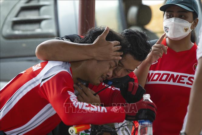 Chiều 15/5/2022 tại Hòa Bình diễn ra thi đấu chung kết nội dung xe đạp Đổ đèo nam, nữ. Kết quả chung cuộc: Ở nội dung nữ: HCĐ thuộc về Gardoce, Naomi (Philippines), HCB thuộc về Deekballes, Vipavee (Thái Lan); HCV thuộc về Prastika, Tiara Andini (indonesia); Ở nội dung đổ đèo nam: HCĐ thuộc về Farr, John Derick (Philippines); HCB thuộc về Prayoga, Andy (Indonesia); HCV thuộc về Boonsane, Methasit (Thái Lan). Ở nội dung này, đội Việt Nam có 3 VĐV đăng ký thi đấu là Tống Thanh Tuyền (số đeo 51) và Nguyễn Hữu Thành (số đeo 52) thi đấu nội dung nam và Quàng Thị Soan (số đeo 56) ở nội dung nữ. Ảnh: Trọng Đạt - TTXVN