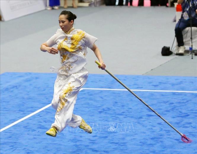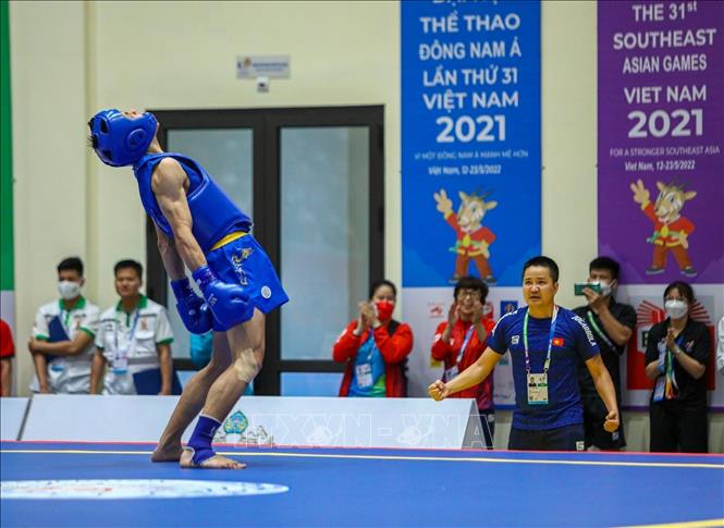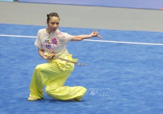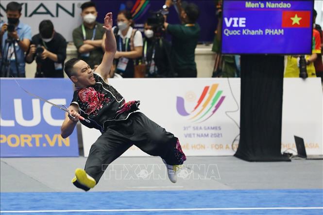 Sau 3 ngày thi đấu (13 - 15/5/2022), khép lại môn Wushu tại SEA Games 31, Đội tuyển Wushu Việt Nam giành tổng số 20 huy chương (trong đó: 10 huy chương Vàng, 3 huy chương Bạc, 7 huy chương Đồng). Việt Nam là đội tuyển thi đấu thành công nhất khi giành 10 trên tổng số 21 huy chương Vàng các nội dung thi đấu tại kỳ SEA Games này. Ảnh: TTXVN