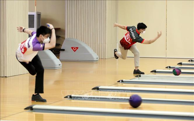 Sáng 16/5/2022, tại Trung tâm Thể thao HeroWorld B2-R3, thuộc Trung tâm Thương mại Vincom Mega Mall - Khu đô thị Royal City (Hà Nội), môn Bowling bước vào ngày thi đấu đầu tiên với nội dung Đơn nam (dầu ngắn). Tranh tài ở nội dung này gồm có 12 vận động viên, đến từ 6 quốc gia gồm chủ nhà Việt Nam, Singapore, Malaysia, Indonesia, Thái Lan và Philippines. Ảnh: TTXVN
