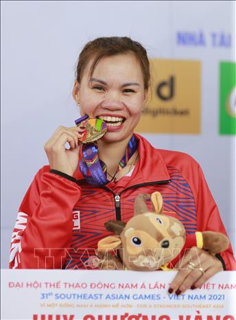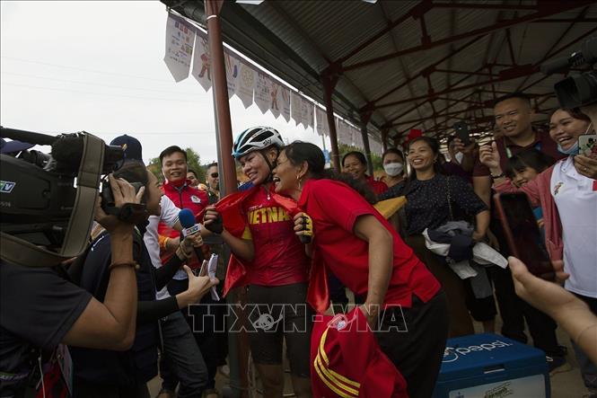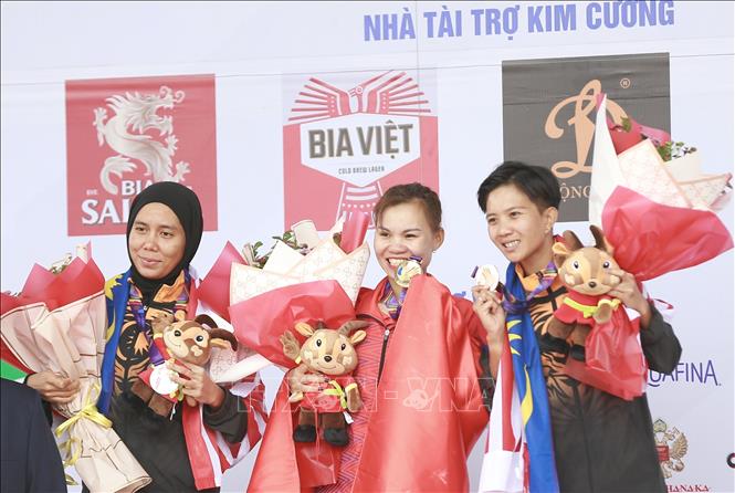 Sáng 16/5/2022, tại Hòa Bình diễn ra nội dung thi đấu Xe đạp Băng đồng Olympic nữ. Kết quả chung cuộc sau ba vòng đấu: HCV thuộc về VĐV dân tộc Mường của Việt Nam Đinh Thị Như Quỳnh, HCB và HCĐ thuộc về hai VĐV Malaysia lần lượt là Zainal Abindin Nurassyira và Soon Natahsya. Ảnh: Trọng Đạt - TTXVN