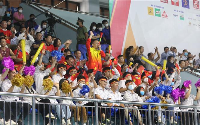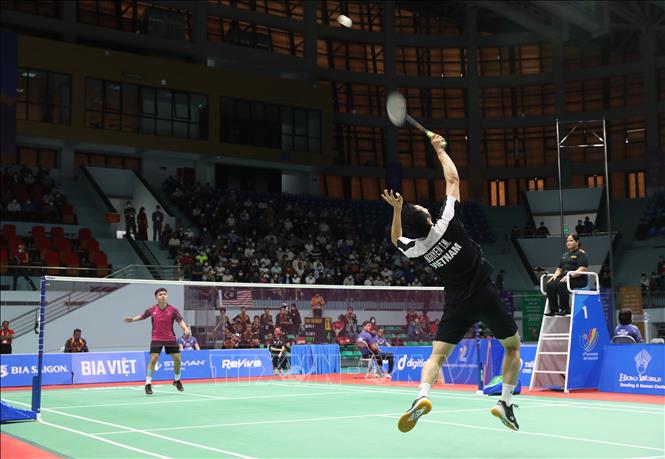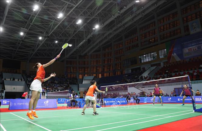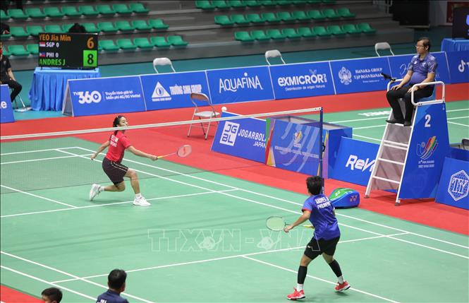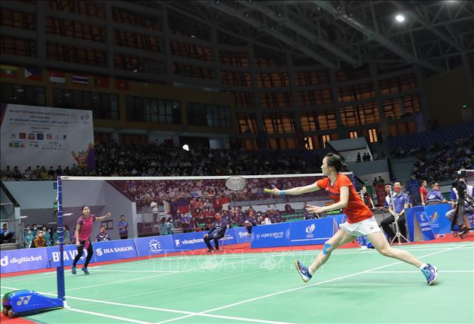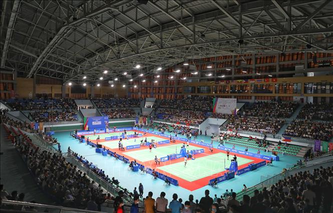 Ngày 16/5, tại Nhà thi đấu thể thao tỉnh Bắc Giang, bắt đầu khởi tranh nội dung thi đấu đồng đội nam, đồng đội nữ môn Cầu lông SEA Games 31. Ảnh: Danh Lam-TTXVN