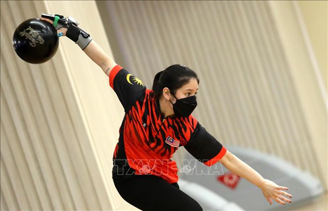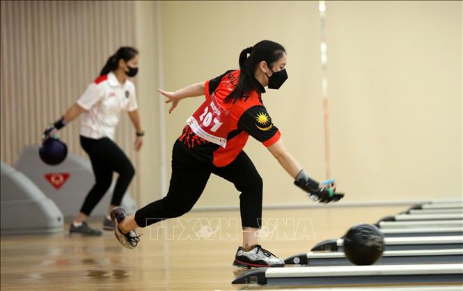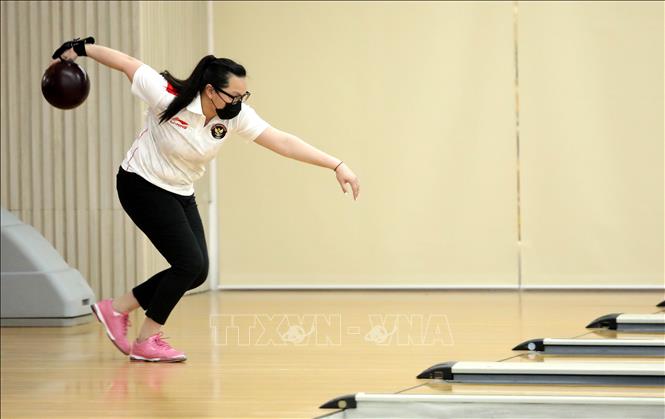 Chiều 16/5/2022, tại trung tâm thể thao HeroWorld B2-R3, thuộc Trung tâm Thương mại Vincom Mega Mall - Khu đô thị Royal City (quận Thanh Xuân, Hà Nội), môn Bowling bước vào nội dung thi đấu thứ hai là Đơn nữ (dầu ngắn). Tranh tài ở nội dung này gồm có 12 Bowler, đến từ 6 quốc gia gồm chủ nhà Việt Nam, Singapore, Malaysia, Indonesia, Thái Lan và Philippines. Ảnh: Trung Kiên - TTXVN