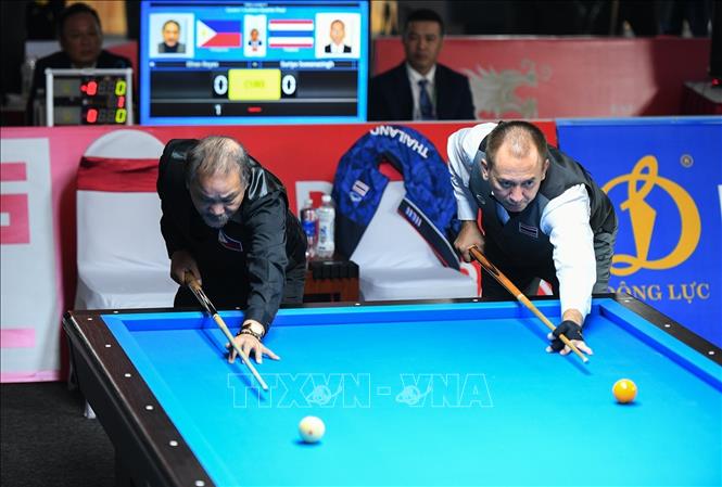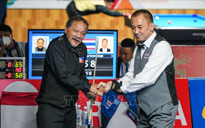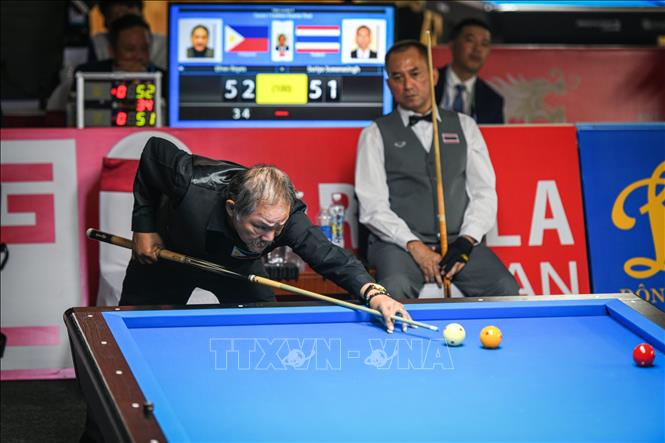 Ngày 16/5/2022, tại Nhà thi đấu Hà Đông diễn ra các trận thi đấu môn Billiard snooker tại SEA Games 31. Đặc biệt có sự xuất hiện của tay cơ huyền thoại Philippines Efren Reyes - người được mệnh danh là “phù thủy bi-a”. Ảnh: TTXVN