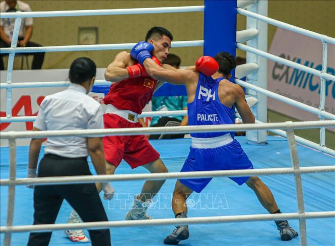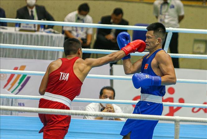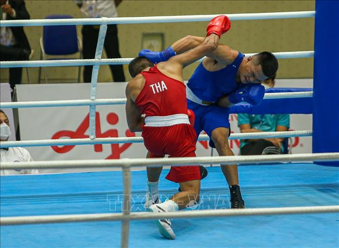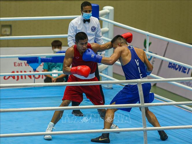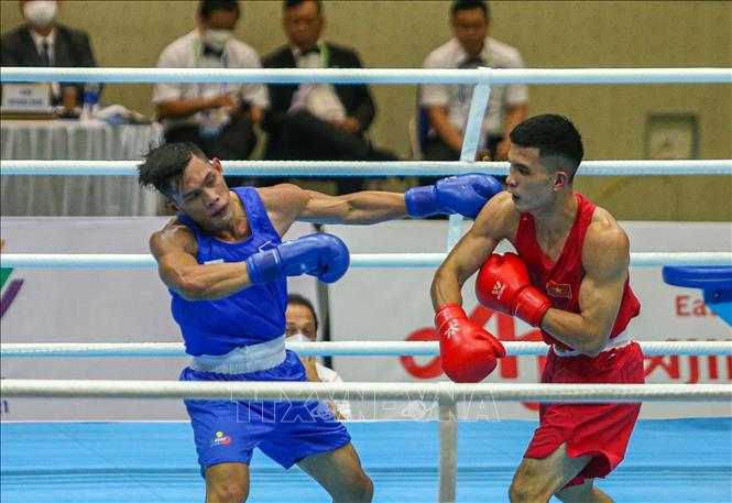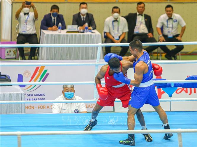 Chiều 16/5/2022, tại Nhà thi đấu Đa năng tỉnh Bắc Ninh khởi tranh môn Boxing tại SEA Games 31 với các trận vòng loại của nam ở các hạng cân 57 kg, 63 kg và 75 kg. Ảnh: Phạm Tuấn Anh - TTXVN