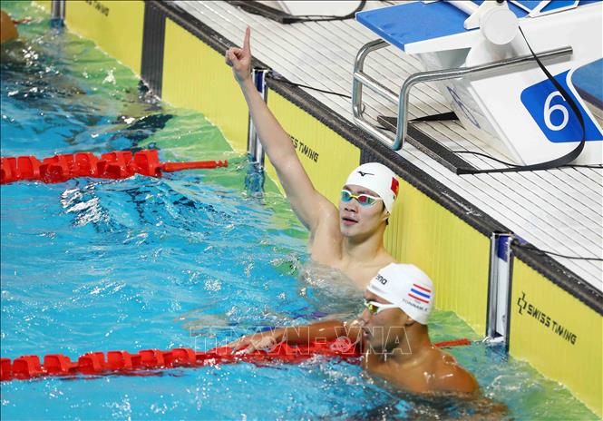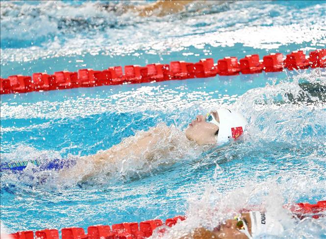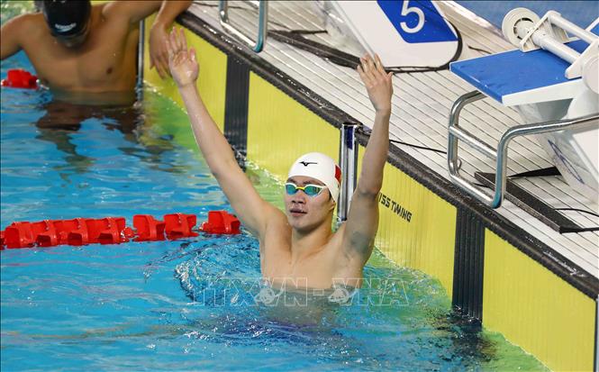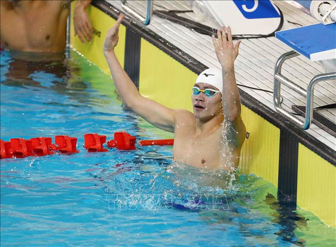 Ngày 16/5/2022, tại Cung thể thao dưới nước (Hà Nội), VĐV Trần Hưng Nguyên (Việt Nam) xuất sắc giành HCV nội dung 200m bơi ngửa nam với thành tích 2 phút 01 giây 58. Ảnh: Phạm Kiên - TTXVN
