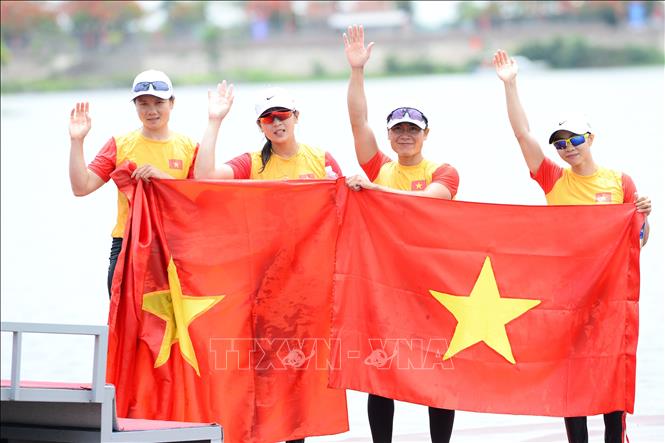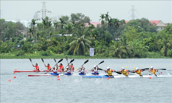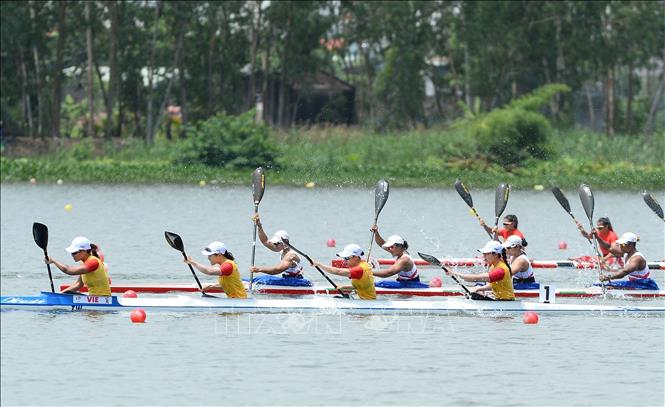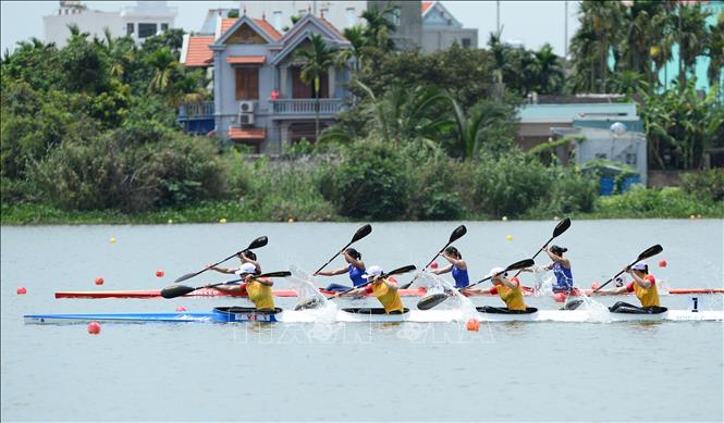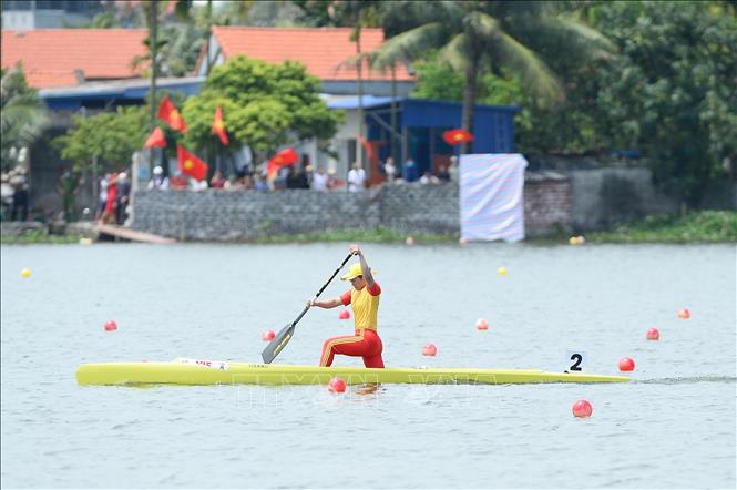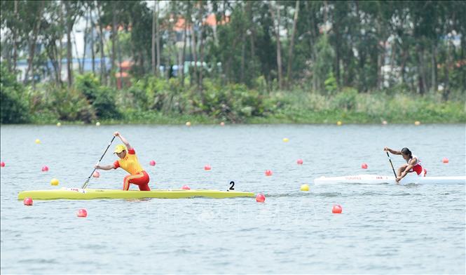 Sáng 17/5/2022, tại Khu huấn luyện đua thuyền Hải Phòng khởi tranh môn Đua thuyền Canoeing/Kayak cự ly 1.000m, gồm 8 nội dung thi đấu. VĐV Nguyễn Thị Hương đã xuất sắc giành tấm HCV đầu tiên ở nội dung thuyền đơn nữ Canoeing 1000m. Ảnh: Minh Đức – TTXVN