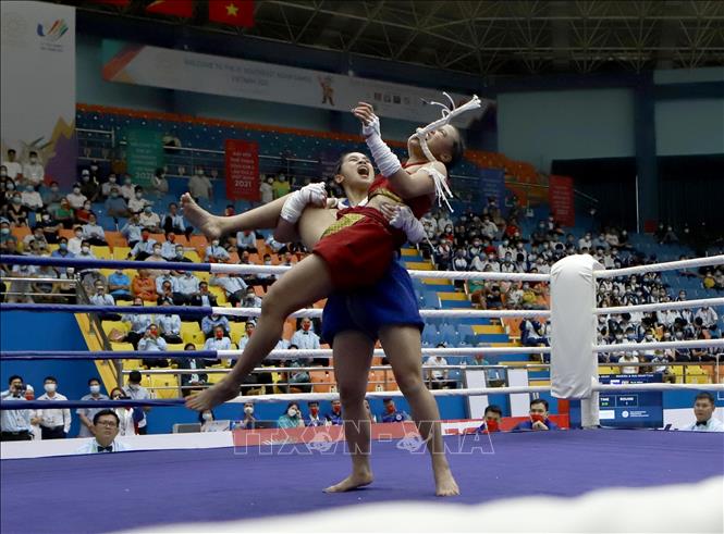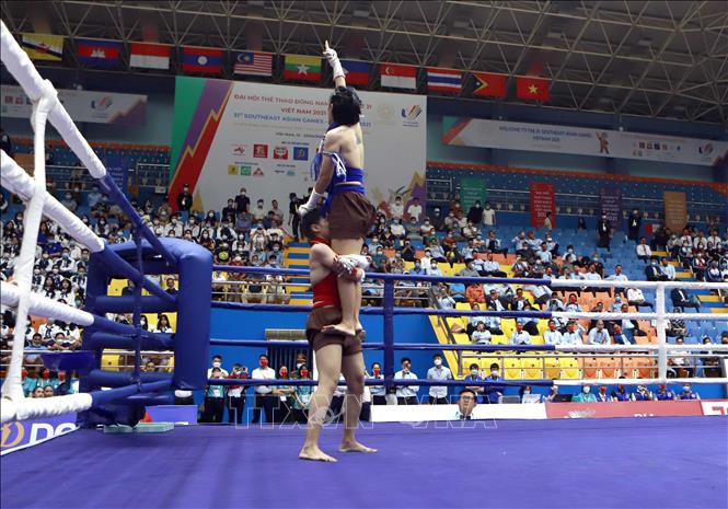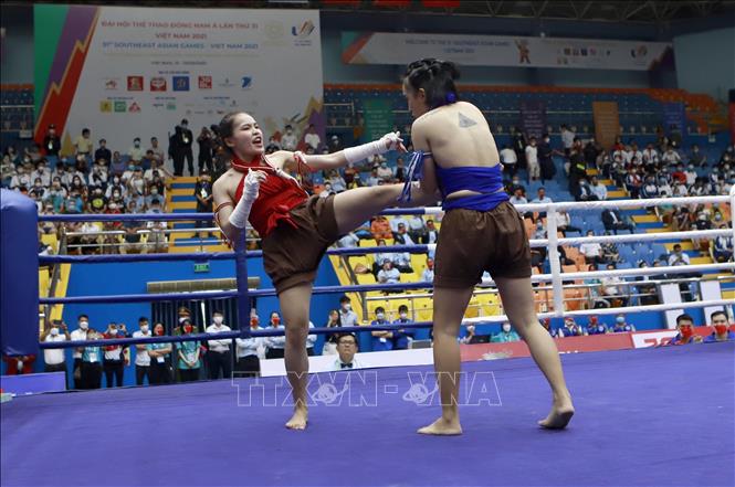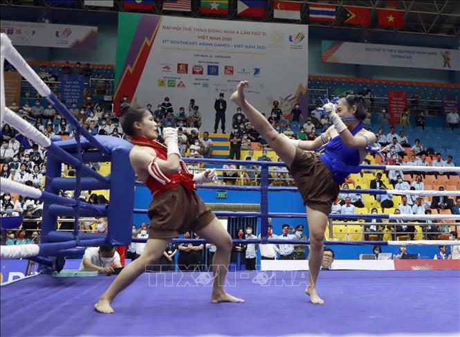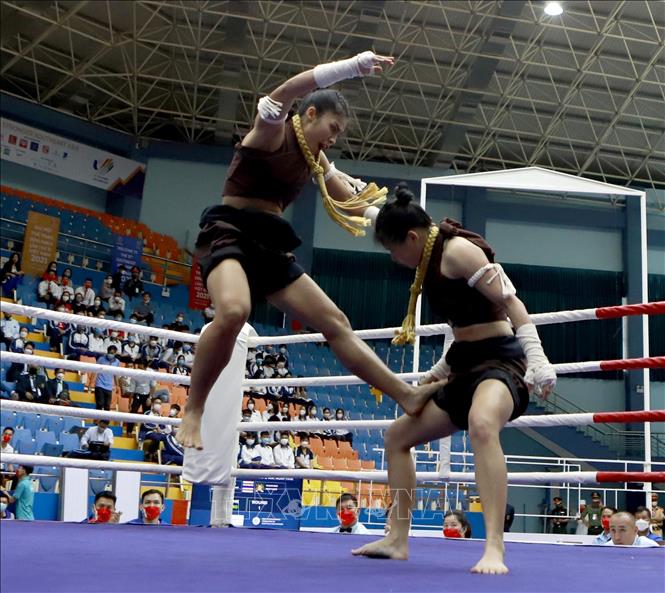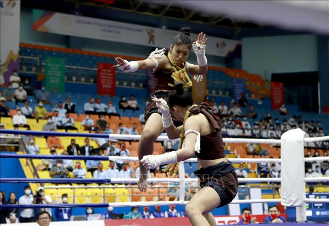 Ngày 17/5/2022, môn Muay ở SEA Games 31 chính thức khai cuộc tại Nhà thi đấu tỉnh Vĩnh Phúc. Hai VĐV của Việt Nam Phạm Thị Diễm Trang, Phạm Thị Bích Liễu giành HCB thi đấu biểu diễn Waikru Mai. Ảnh: Hoàng Hùng - TTXVN