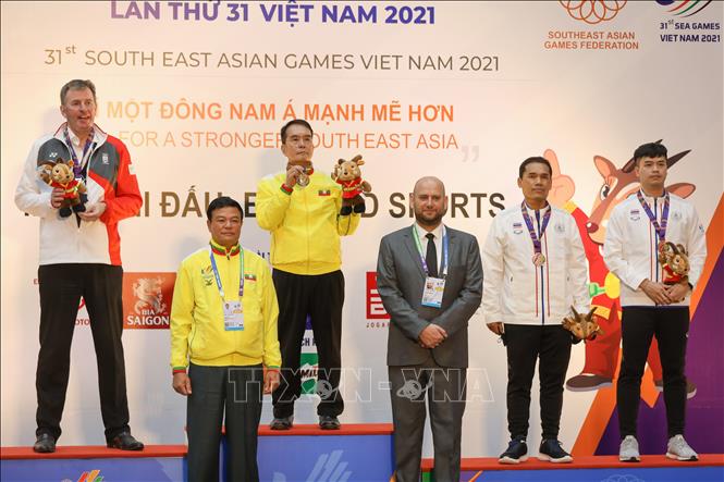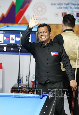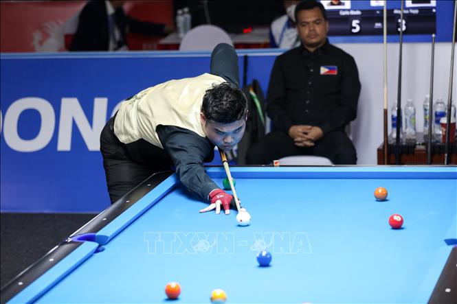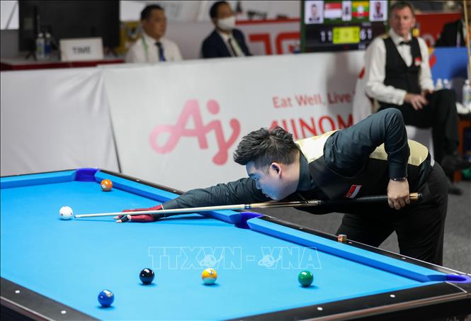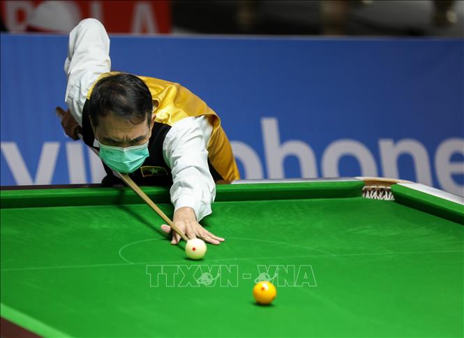 Ngày 17/5/2022, tại Nhà thi đấu Hà Đông (Hà Nội) tiếp tục diễn ra các trận thi đấu môn Billiard snooker ở SEA Games 31. Ảnh: Khánh Hoà - TTXVN
