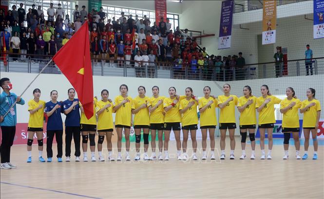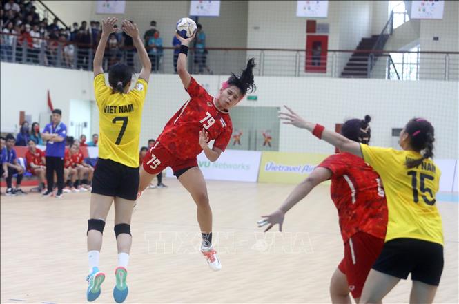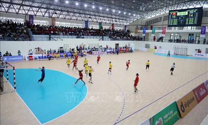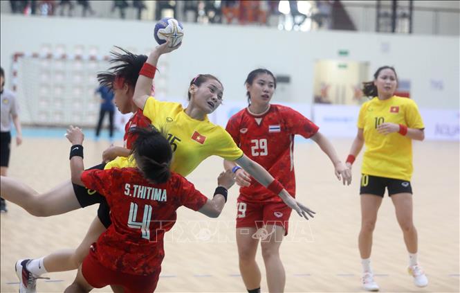 Ngày 17/5/2022, tại Trường Đại học Thể dục Thể thao Bắc Ninh, đội tuyển bóng ném nữ Việt Nam (áo vàng) thắng đội tuyển bóng ném nữ Thái Lan (áo đỏ) với tỷ số 40 - 30 trong lượt trận thứ 2 môn Bóng ném trong nhà tại SEA Games 31. Ảnh: Thế Duyệt – TTXVN