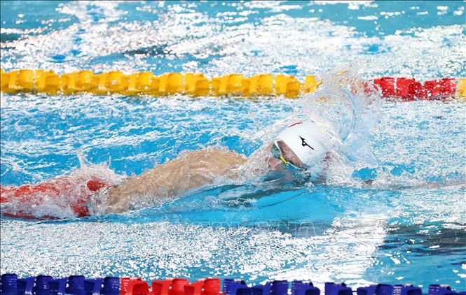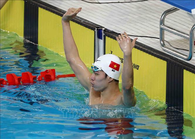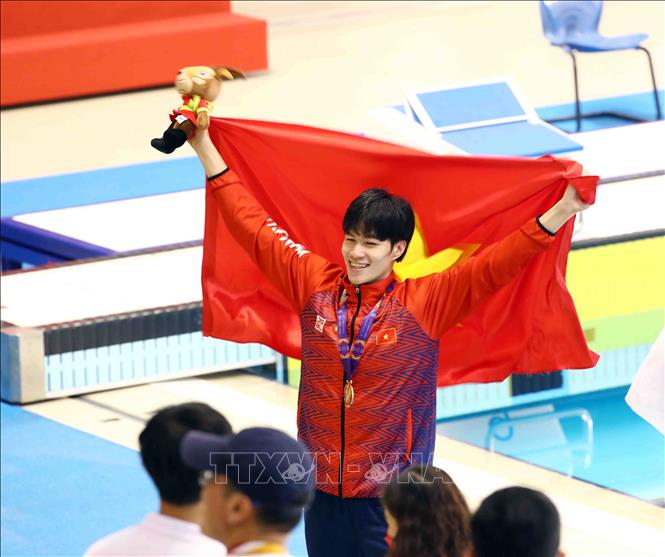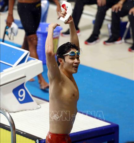 Ngày 18/5/2022, tại Cung thể thao dưới nước (Hà Nội), VĐV Trần Hưng Nguyên (Việt Nam) giành HCV thứ 4 tại SEA Games 31 sau chiến thắng ở nội dung bơi 200m hỗn hợp nam với thành tích 2 phút 01 giây 22. Ảnh: Phạm Kiên - TTXVN