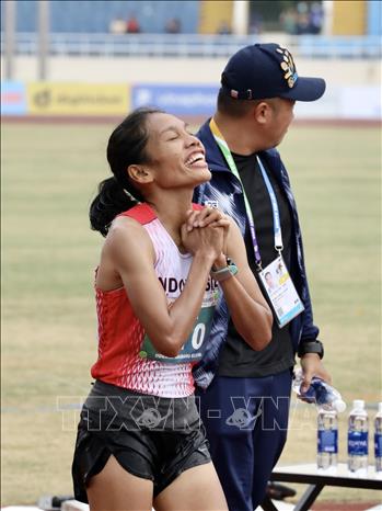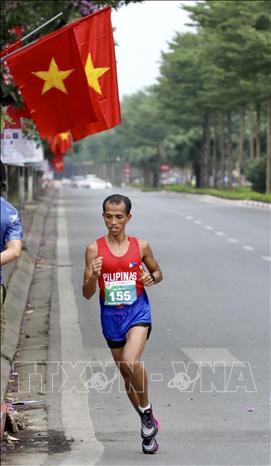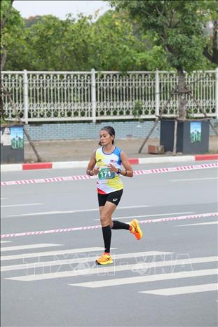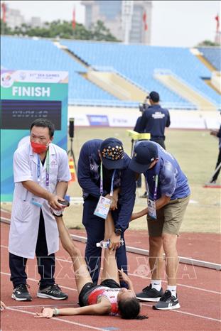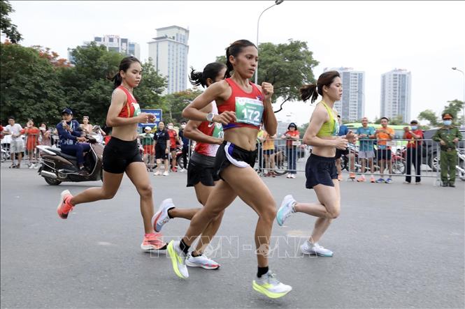 Sáng 19/5/2022, môn Điền kinh tại SEA Games 31 bước vào ngày thi đấu thứ 6 trên SVĐ Quốc gia Mỹ Đình với các nội dung Marathon nam, nữ 42,195km và đi bộ 20km. Ảnh: TTXVN
