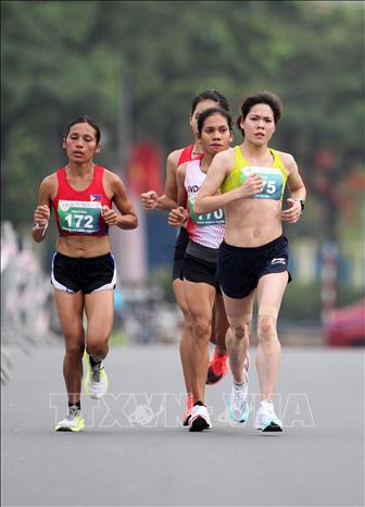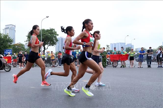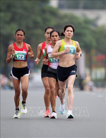 Sáng 19/5/2022, tại quảng trường SVĐ quốc gia Mỹ Đình (Hà Nội) diễn ra thi nội dung chạy Marathon 42,195km nam, nữ. Đây là nội dung thi đấu cuối cùng của môn Điền kinh tại SEA Games 31. Ảnh: Quốc Khánh - TTXVN