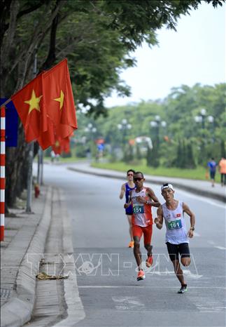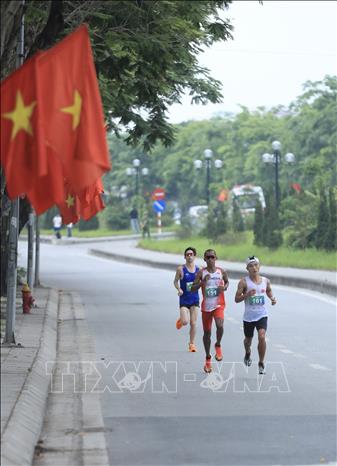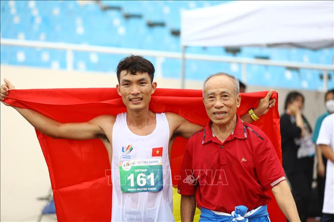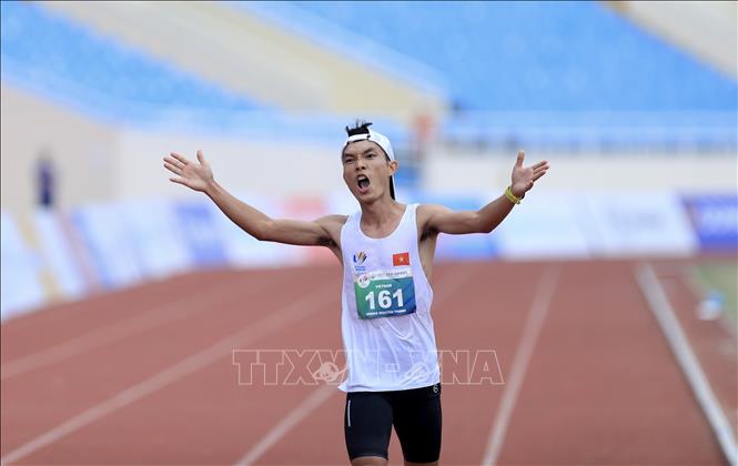 Sáng 19/5/2022, ngày thi đấu cuối cùng của môn Điền kinh tại SEA Games 31, VĐV Hoàng Nguyên Thanh đã mang về cho đội tuyển Điền kinh Việt Nam tấm HCV thứ 20 ở nội dung chạy Marathon cự ly 42,195 km nam với thành tích 2 giờ 25 phút 07 giây 84. Đây cũng là lần đầu tiên trong lịch sử Điền kinh Việt Nam giành HCV ở nội dung Marathon cự ly này tại SEA Games. Ảnh: Huy Hùng - TTXVN