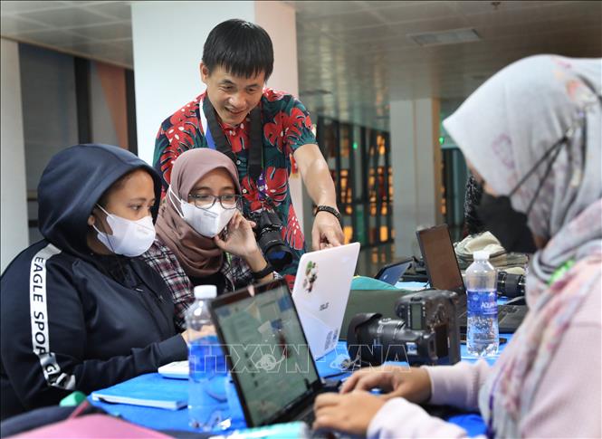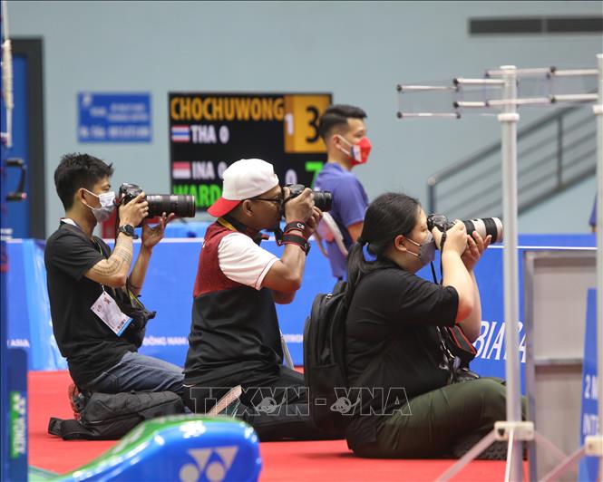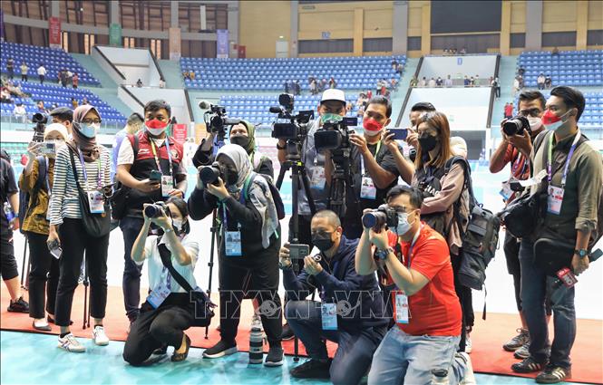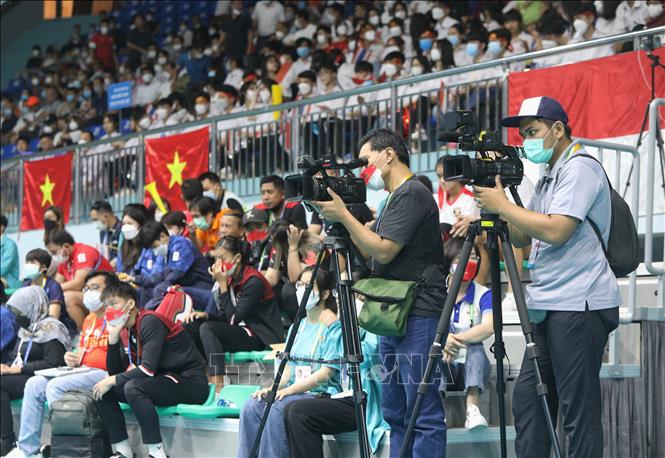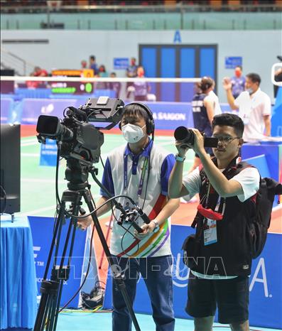 Trong thời gian diễn ra tranh môn Cầu lông của SEA Games 31 tại Nhà thi đấu thể thao tỉnh Bắc Giang, nhiều phóng viên quốc tế đã đến và được Ban tổ chức tạo điều kiện tốt nhất để tác nghiệp. Ảnh: Danh Lam-TTXVN