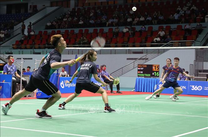 Ngày 19/5/2022, tại Nhà thi đấu thể thao tỉnh Bắc Giang, môn Cầu lông SEA Games 31 tiếp tục khởi tranh các nội dụng: đơn nam, đơn nữ, đôi nam, đôi nữ và đôi nam nữ, vòng 1/16. Ảnh: Danh Lam-TTXVN