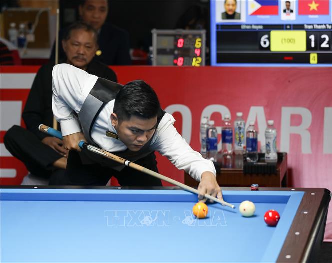 Theo kế hoạch, trận chung kết nội dung carom 1 băng giữa hai cơ thủ của Việt Nam là Nguyễn Trần Thanh Tự và Phạm Quốc Tuấn sẽ diễn ra vào 10 giờ ngày 19/5/2022. Tuy nhiên, do cơ thủ Phạm Quốc Tuấn mắc COVID-19, không được ra thi đấu nên trận đấu đã không diễn ra. Như vậy, ở nội dung carom 1 băng, cả HCV và HCB đều thuộc về các cơ thủ của Việt Nam. Trong đó, cơ thủ Nguyễn Trần Thanh Tự giành HCV, còn HCB thuộc về cơ thủ Phạm Quốc Tuấn. Ảnh: Khánh Hoà - TTXVN