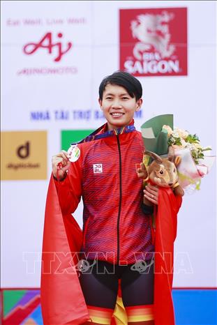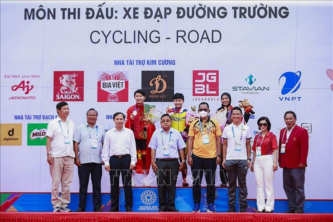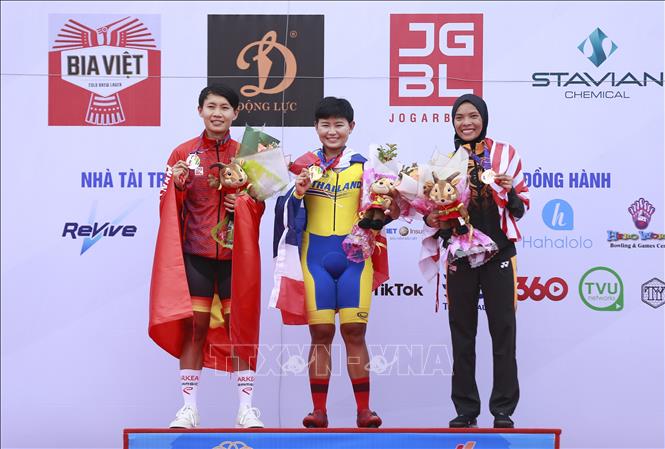 Ngày 19/5/2022, tại Hòa Bình diễn ra nội dung thi đấu Đường trường tính giờ cự ly 30km nữ, môn Xe đạp tại SEA Games 31. Kết quả chung cuộc: VĐV MANEEPHAN Jutatip (Thái Lan) giành HCV; VĐV Nguyễn Thị Thật (Việt Nam) giành HCB; HCĐ thuộc về MOHAMAD ZBIR Nur Aisyah (Malaysia). Ảnh: Trọng Đạt – TTXVN