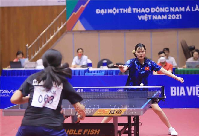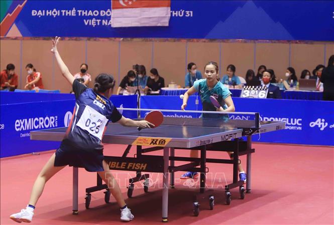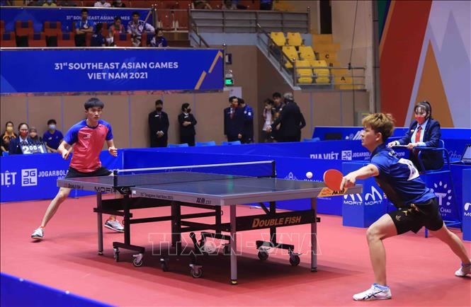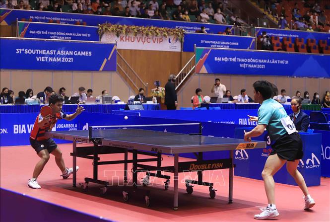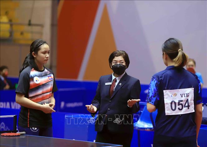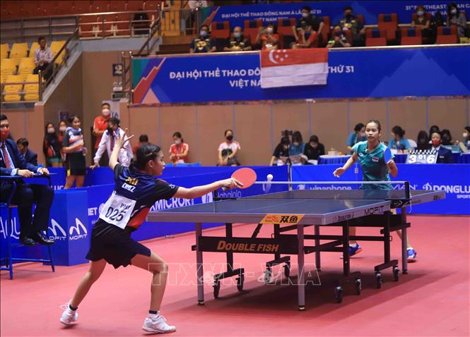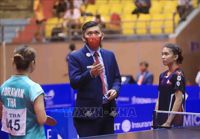 Chiều 19/5/2022, tại Nhà thi đấu Thể dục thể thao tỉnh Hải Dương diễn ra các trận thi đấu vòng bảng nội dung đơn nam, đơn nữ của môn Bóng bàn tại SEA Games 31. Nội dung đơn nữ: Thái Lan gặp Philippines, Việt Nam gặp Campuchia, Singapore gặp Campuchia, Lào gặp Malaysia. Nội dung đơn nam: Thái Lan gặp Philippines, Malaysia gặp Singapore và Sigapore gặp Thái Lan. Ảnh: Quý Trung – TTXVN