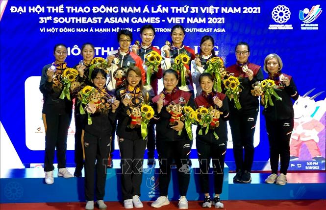 Ngày 19/5/2022, tại Trung tâm Thể thao HeroWorld B2-R3, thuộc Trung tâm thương mại Vincom Mega Mall - Khu đô thị Royal City (quận Thanh Xuân, Hà Nội), môn Bowling bước vào ngày thi đấu cuối cùng với nội dung đồng đội 4 nam và đồng đội 4 nữ. Tại nội dung đồng đội 4 nam, các vận động viên đến từ Philippines đã giành HCV; HCB trao cho các VĐV Malaysia và HCĐ được trao cho các VĐV của Singapore. Tại nội dung đồng đội 4 nữ, các VĐV của Singapore giành HCV; HCB được trao cho đội Malaysia và đội Indonesia đạt HCĐ. Ảnh: Trung Kiên – TTXVN