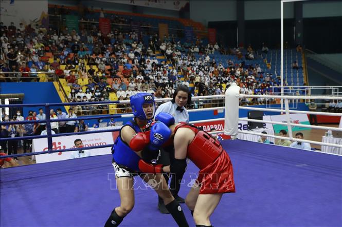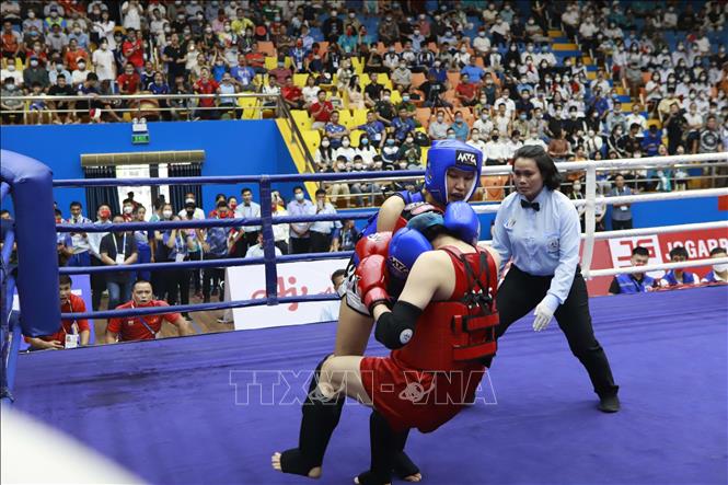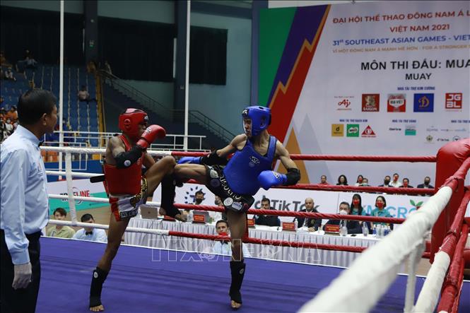 Chiều 19/5/2022, tại Nhà thi đấu tỉnh Vĩnh Phúc, diễn ra các trận vòng loại và bán kết của nội dung đối kháng nam, nữ ở các hạng cân môn Muay trong khuôn khổ SEA Games 31. Đội tuyển Muay Việt Nam đã xuất sắc vượt qua các đối thủ để bước vào vòng chung kết nội dung đối kháng. Ảnh: Nguyễn Thảo - TTXVN