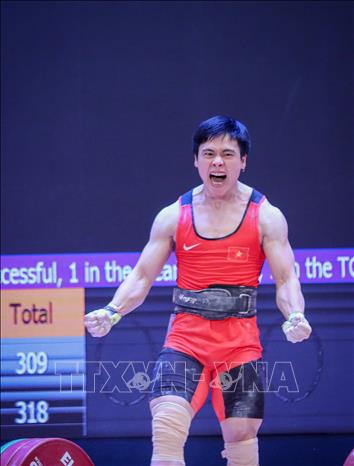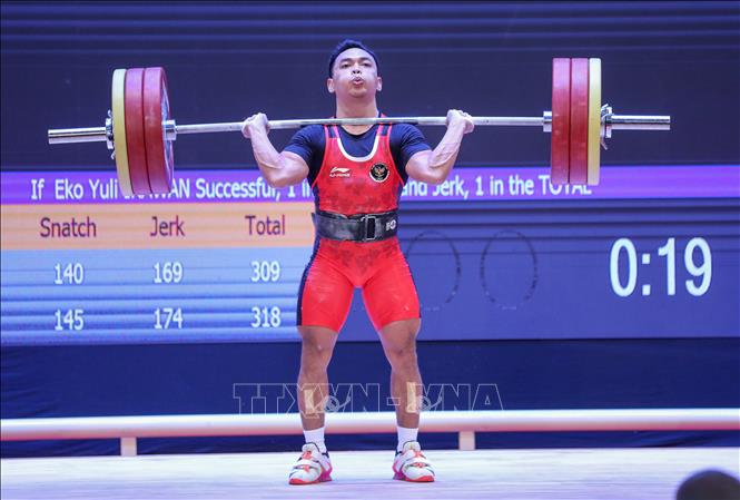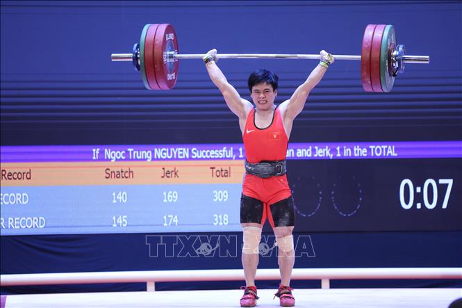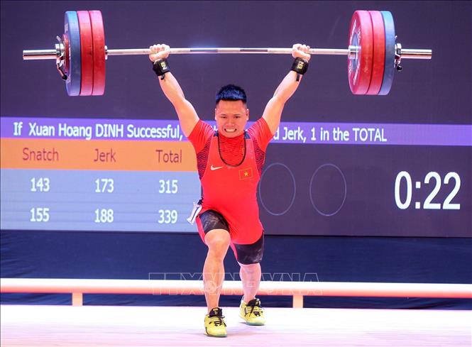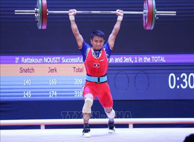 Ngày 20/5/2022, tại Trung tâm Huấn luyện và Thi đấu TDTT Hà Nội diễn ra ngày thi đấu thứ hai của môn Cử tạ ở SEA Games 31. Ảnh: TTXVN