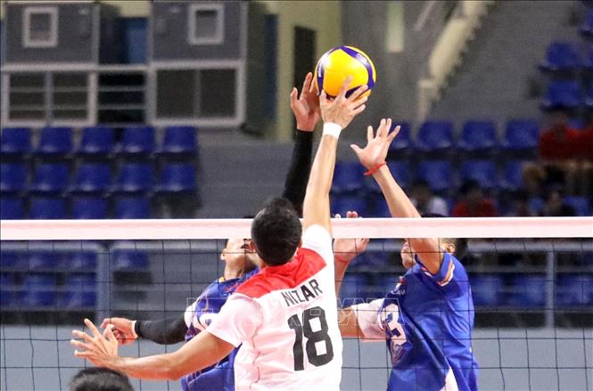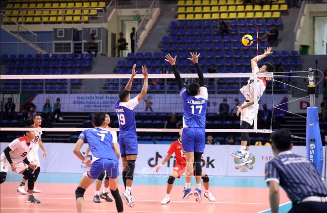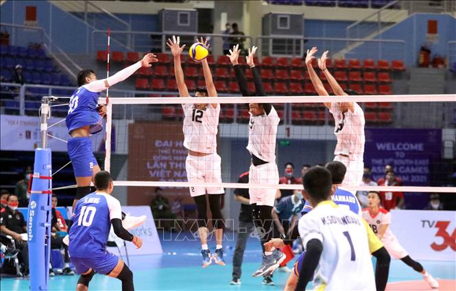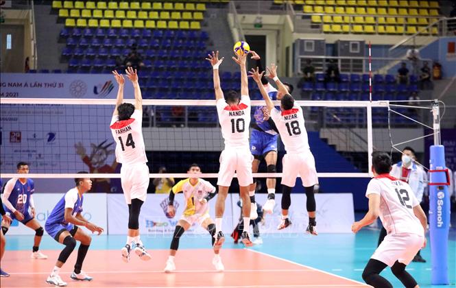 Chiều 20/5/2022, tại Nhà thi đấu Đại Yên (thành phố Hạ Long, tỉnh Quảng Ninh) diễn ra trận bán kết 1 bóng chuyền nam giữa đội Indonesia (áo trắng) và Campuchia (áo xanh) trong khuôn khổ môn Bóng chuyền trong nhà ở SEA Games 31. Kết quả cuối cùng, đội bóng chuyền nam Indonesia thắng với tỷ số 3-1. Ảnh: Anh Tuấn – TTXVN