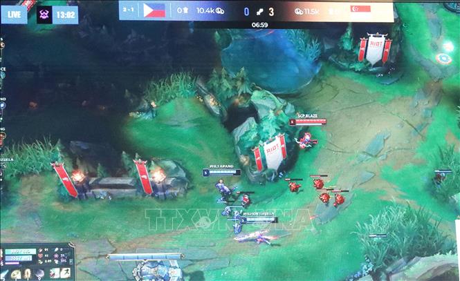 Chiều 20/5/2022, tại Trung tâm Hội nghị Quốc gia (Hà Nội), khởi tranh vòng bảng nội dung Liên minh huyền thoại, môn Thể thao điện tử (E-Sport). Nội dung Liên minh huyền thọai có 6 đội tham dự và được chia làm 2 bảng. Bảng A gồm Thái Lan, Philippines, Singapore. Bảng B gồm Việt Nam, Malaysia và Lào. Ở vòng bảng, các đội ở mỗi bảng sẽ thi đấu vòng tròn hai lượt để chọn ra 2 đội xuất sắc nhất ở mỗi bảng vào vòng chung kết. Ảnh: Minh Đông-TTXVN