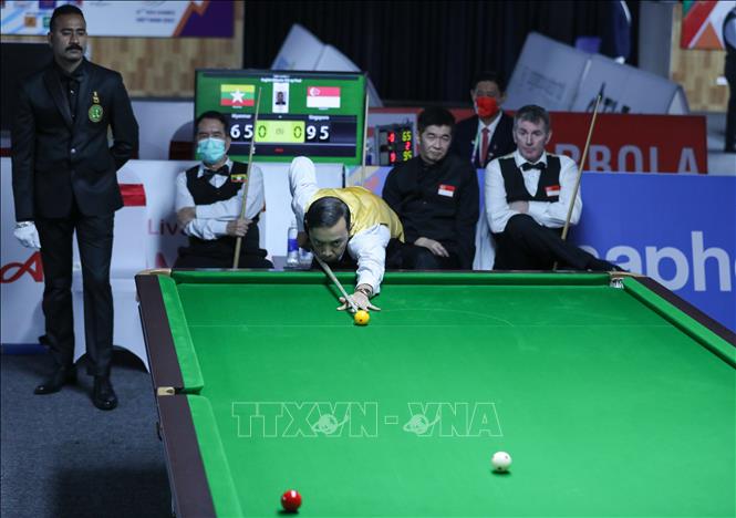 Ngày 20/5/2022, tại Nhà thi đấu Hà Đông (Hà Nội) tiếp tục diễn ra các trận thi đấu môn Billiard snooker tại SEA Games 31. Ảnh: Khánh Hoà - TTXVN