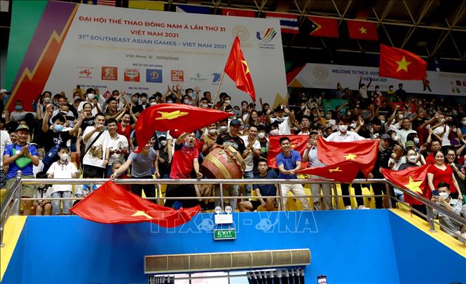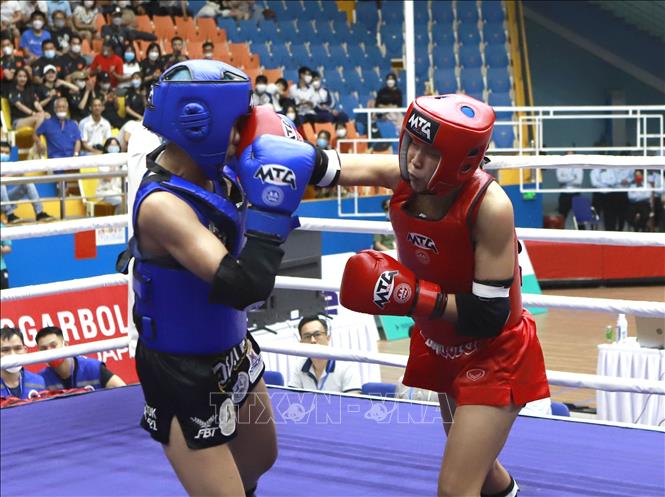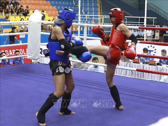 Ngày 20/5/2022, tại Nhà thi đấu tỉnh Vĩnh Phúc tiếp tục diễn ra các nội dung thi đấu đối kháng vòng bán kết môn Muay SEA Games 31. Ba VĐV Việt Nam: Nguyễn Trần Duy Nhất (hạng 60 kg), Huỳnh Hoàng Phi (hạng 54kg) và Trương Quốc Hùng (hạng 81 kg) xuất sắc vượt qua các đối thủ để vào đấu trận chung kết. Ảnh: Hoàng Hùng - TTXVN