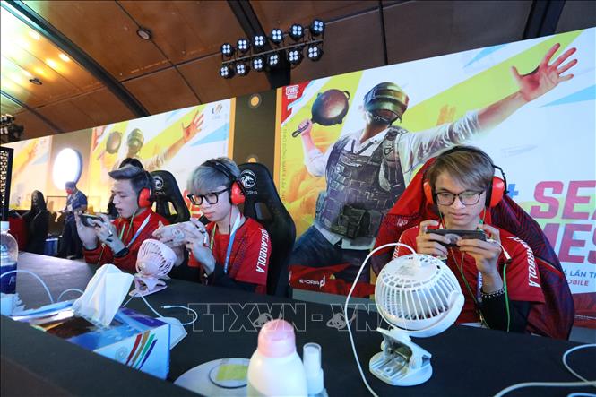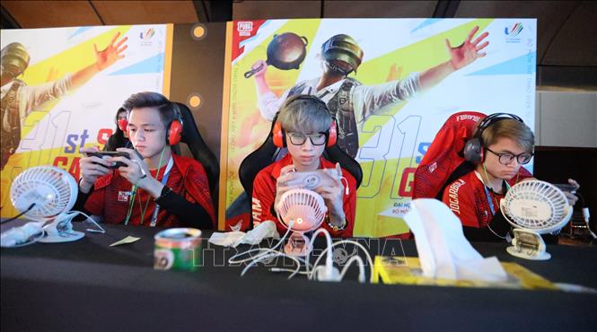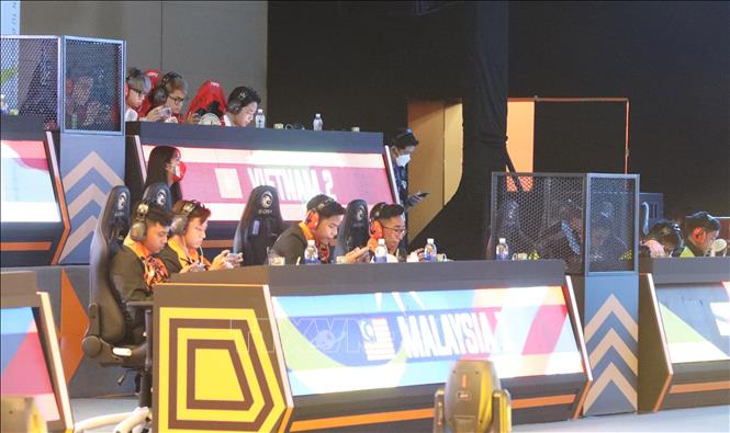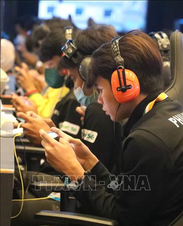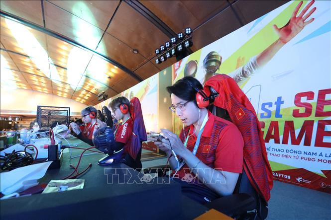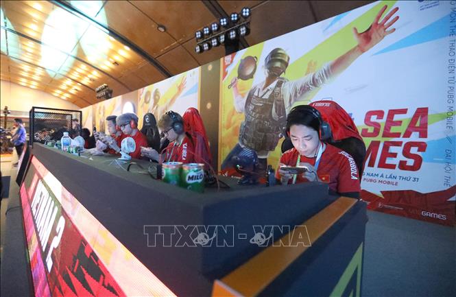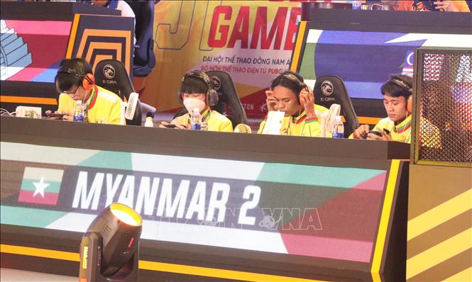 Chiều 20/5/2022, tại Trung tâm Hội nghị Quốc gia (Hà Nội), bộ môn Thể thao điện tử (E-Sport) tại SEA Games 31 diễn ra ngày thi đấu chung kết thứ nhất nội dung PUBG Mobile thể thức đồng đội. PUBG Mobile thể thức đồng đội có sự tham dự của 16 đội đến từ 9 quốc gia gồm: Thái Lan, Philippines, Indonesia, Myanmar, Malaysia, Campuchia, Việt Nam, Lào, Brunei. Ảnh: Minh Đông-TTXVN
