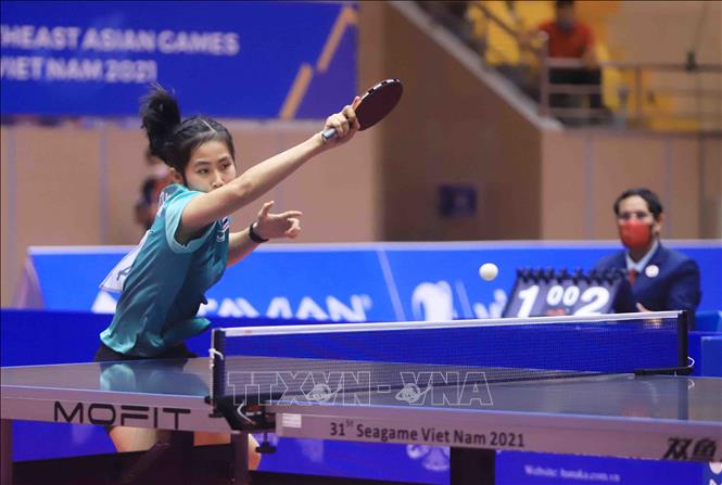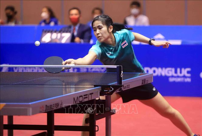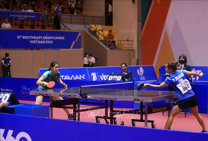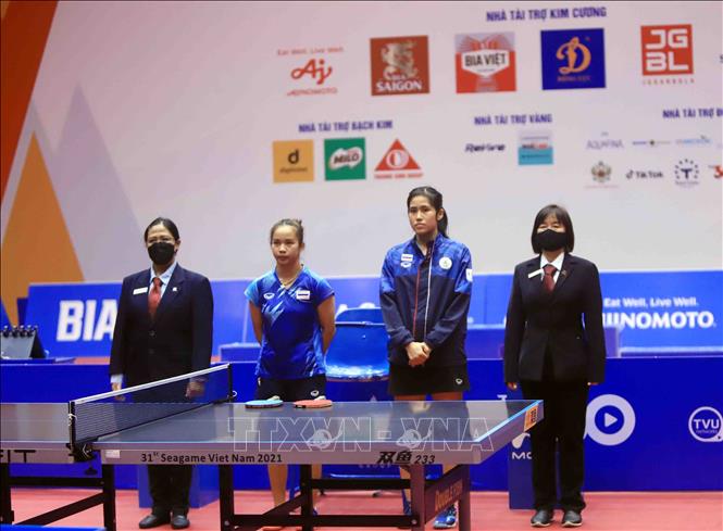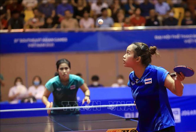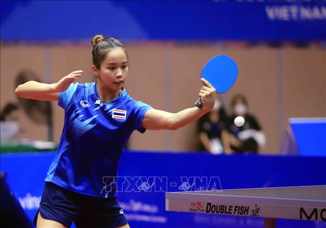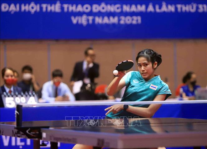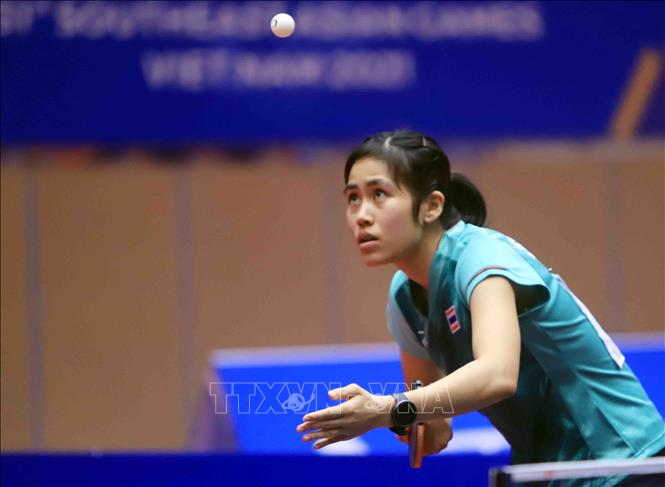 Tối 20/5/2022, tại Nhà thi đấu Thể dục thể thao tỉnh Hải Dương diễn ra trận chung kết nội dung đơn nữ của môn Bóng bàn tại SEA Games 31 giữa 2 VĐV Thái Lan Suthasini Sawettabut và Orawan Parangang. Kết thúc trận đấu, VĐV Orawan Parangang giành chiến thắng với tỷ số 4-2. giành HCV. Ảnh: Quý Trung – TTXVN