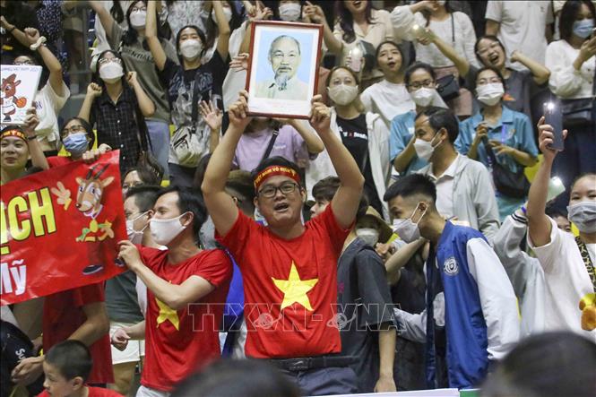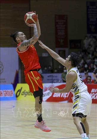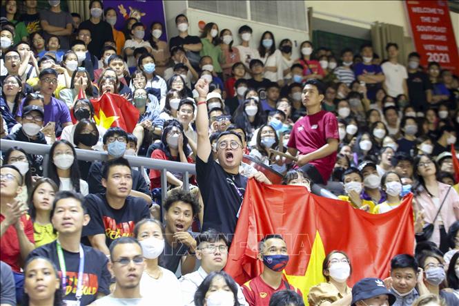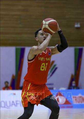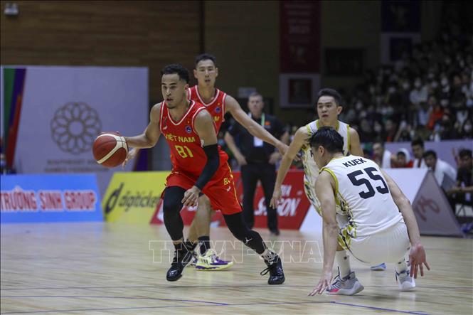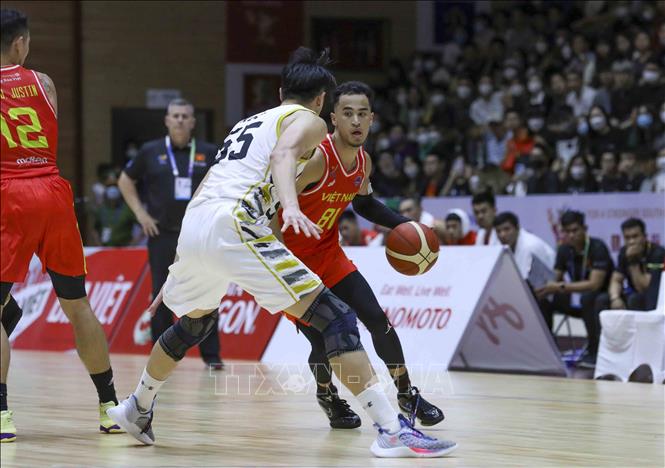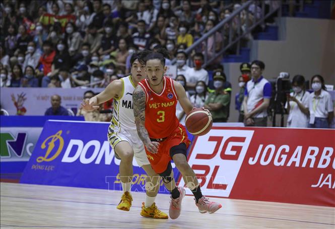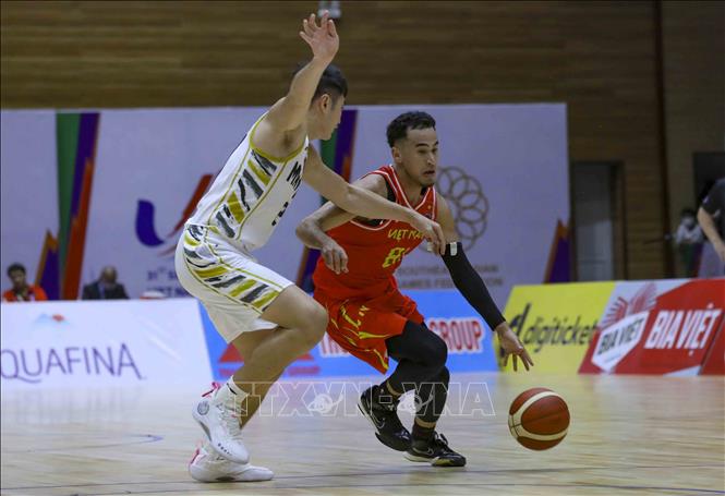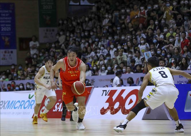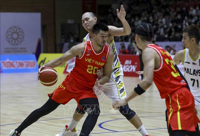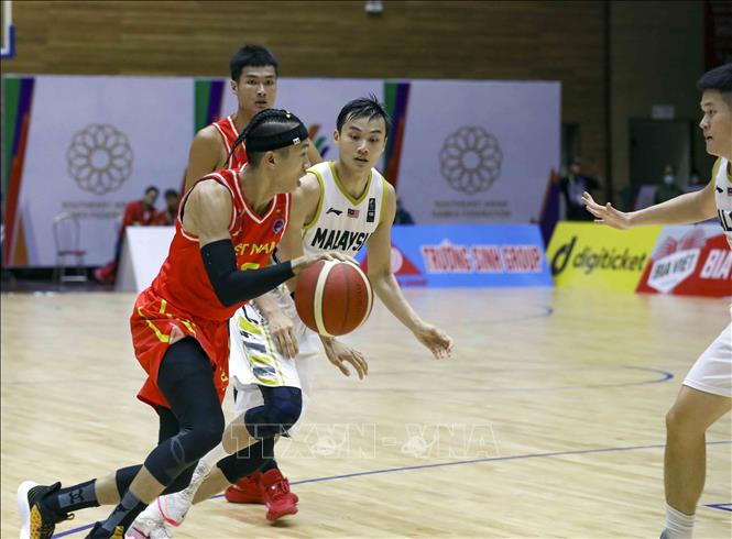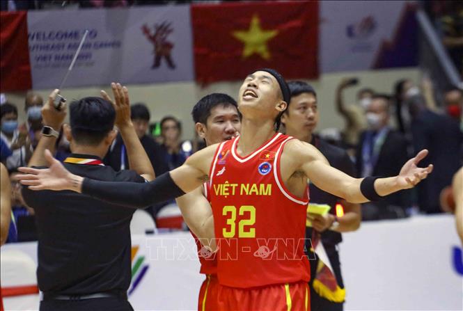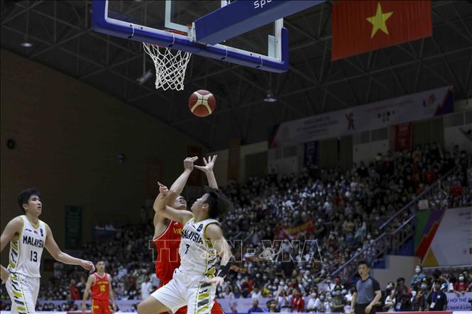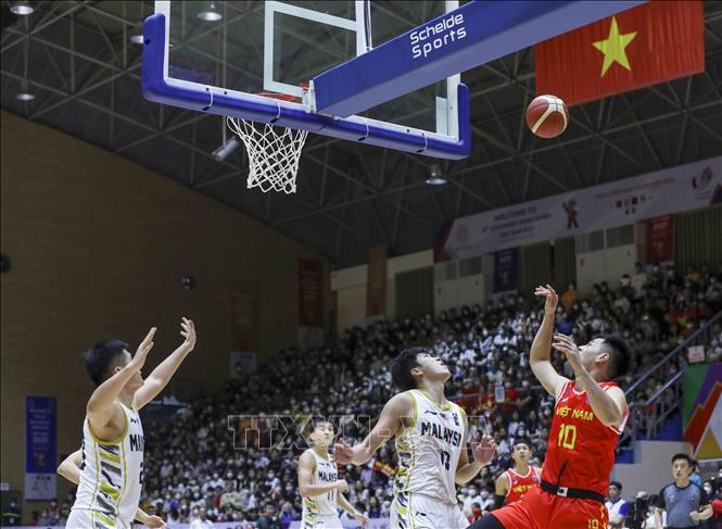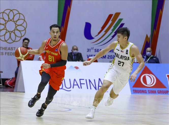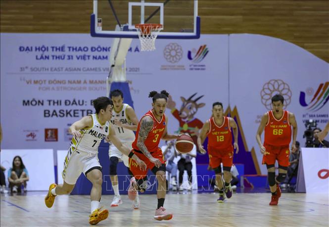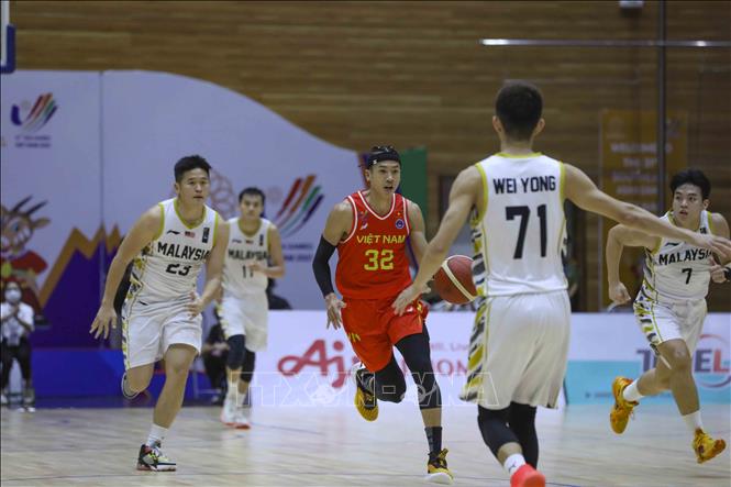 Ngày 20/5/2022, tại Nhà thi đấu Thanh Trì (Hà Nội), Đội tuyển bóng rổ nam Việt Nam giành chiến thắng trước nam Malaysia với tỉ số 97-74 trong ngày thi đấu thứ năm của bộ môn Bóng rổ 5x5 (thi đấu cả sân) ở SEA Games 31. Ảnh: TTXVN
