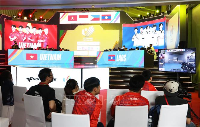 Sáng 21/5/2022, tại Trung tâm Hội nghị Quốc gia (Hà Nội) diễn ra các trận thi đấu game nội dung Cross fire-đột kích của bộ môn Thể thao điện tử (E-Sport) tại SEA Games 31. Có 4 đội tham dự tranh tài tại nội dung này gồm: Việt Nam, Lào, Indonesia và Philippines. Ảnh: Minh Đông – TTXVN
