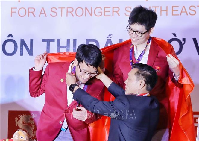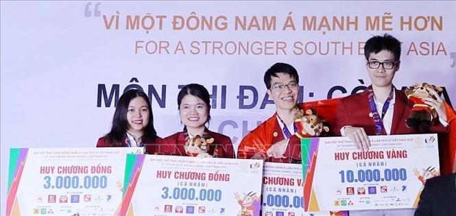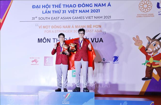 Sáng 21/5/2022, môn Cờ vua tại SEA Games 31 bước vào thi đấu nội dung Cờ chớp đồng đội, cũng là nội dung thi cuối cùng. Hai VĐV Lê Quang Liêm và Lê Tuấn Minh ở bảng nam xuất sắc đoạt huy chương Vàng; Phạm Lê Thảo Nguyên và Phạm Thi Mai Hưng ở bảng nữ chia sẻ huy chương Đồng cùng Malaysia. Kết thúc 11 ngày thi đấu tại Cung quy hoạch, Hội chợ và Triển lãm (thành phố Hạ Long, tỉnh Quảng Ninh), Đội tuyển Cờ vua Việt Nam giành vị trí nhất toàn đoàn với 7 huy chương Vàng. Ảnh: Thanh Vân-TTXVN