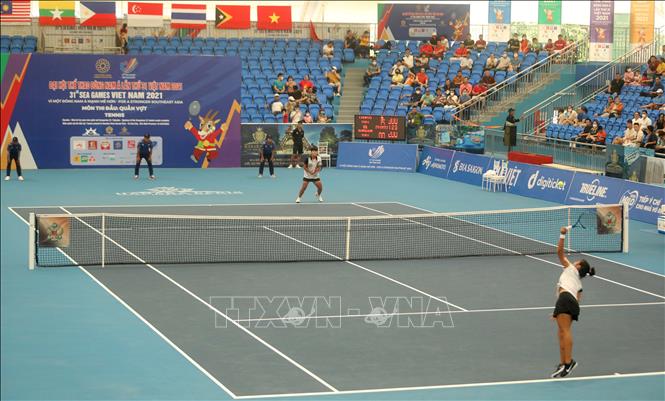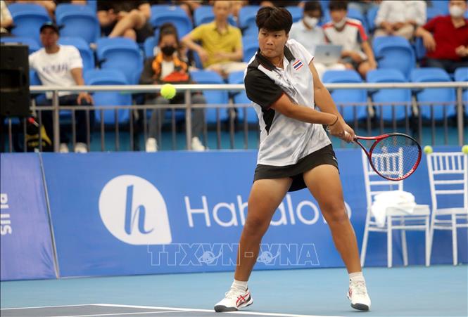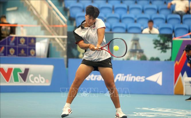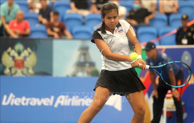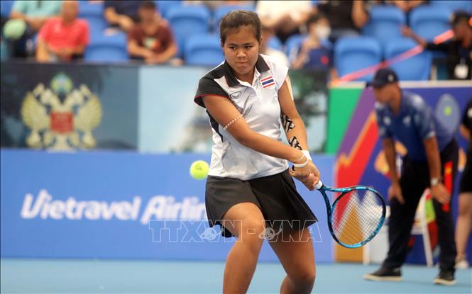 Ngày 21/5/2022, tại Nhà thi đấu Hanaka Từ Sơn (Bắc Ninh), tay vợt Luksika Kumkhum (Thái Lan) thắng tay vợt đồng hương Anchisa Chanta 2-1 trong trận chung kết nội dung đơn nữ môn Quần vợt ở SEA Games 31, giành HCV. Ảnh: Thế Duyệt – TTXVN
