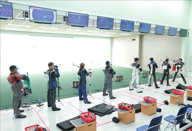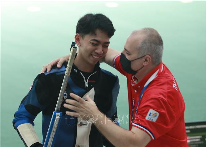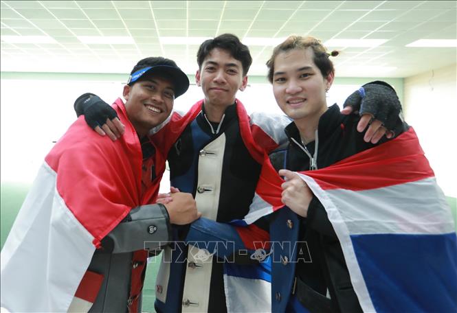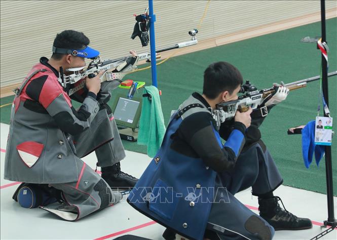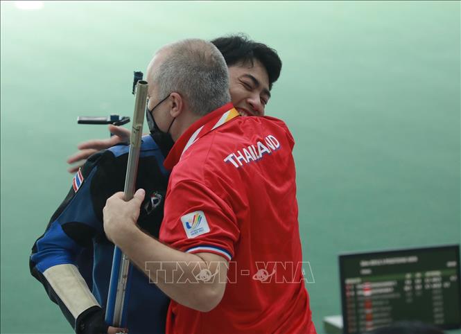 Chiều 21/5/2022, tại Trung tâm Huấn luyện thể thao Quốc gia Hà Nội diễn ra chung kết nội dung 50m súng trường 3 tư thế nam môn Bắn súng ở SEA Games 31. Kết quả: VĐV Vongsukdee Thongphaphum (Thái Lan) giành HCV, Gustafian Fathur (Indonesia) giành HCB; HCĐ thuộc về VĐV Tortungpanich Napis (Thái Lan). Ảnh: Hoàng Hiếu - TTXVN