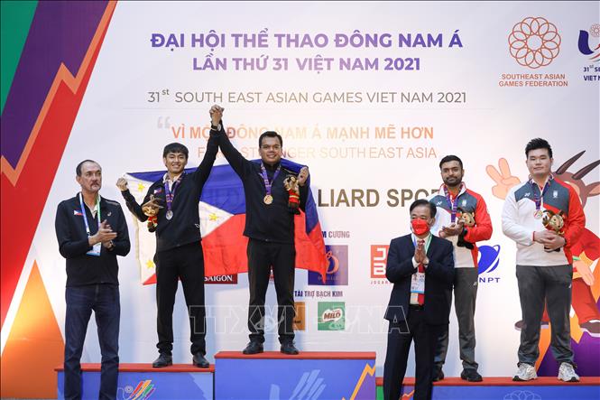 Ngày 21/5/2022, tại Nhà thi đấu Hà Đông (Hà Nội) tiếp tục diễn ra các trận thi đấu môn Billiard snooker tại SEA Games 31. Ảnh: Khánh Hoà - TTXVN